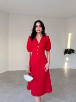 Ana Sayfa YENİ GELENLER Kırmızı İnci Düğme Detaylı Yarım Kol Midi GABRİEL Elbise