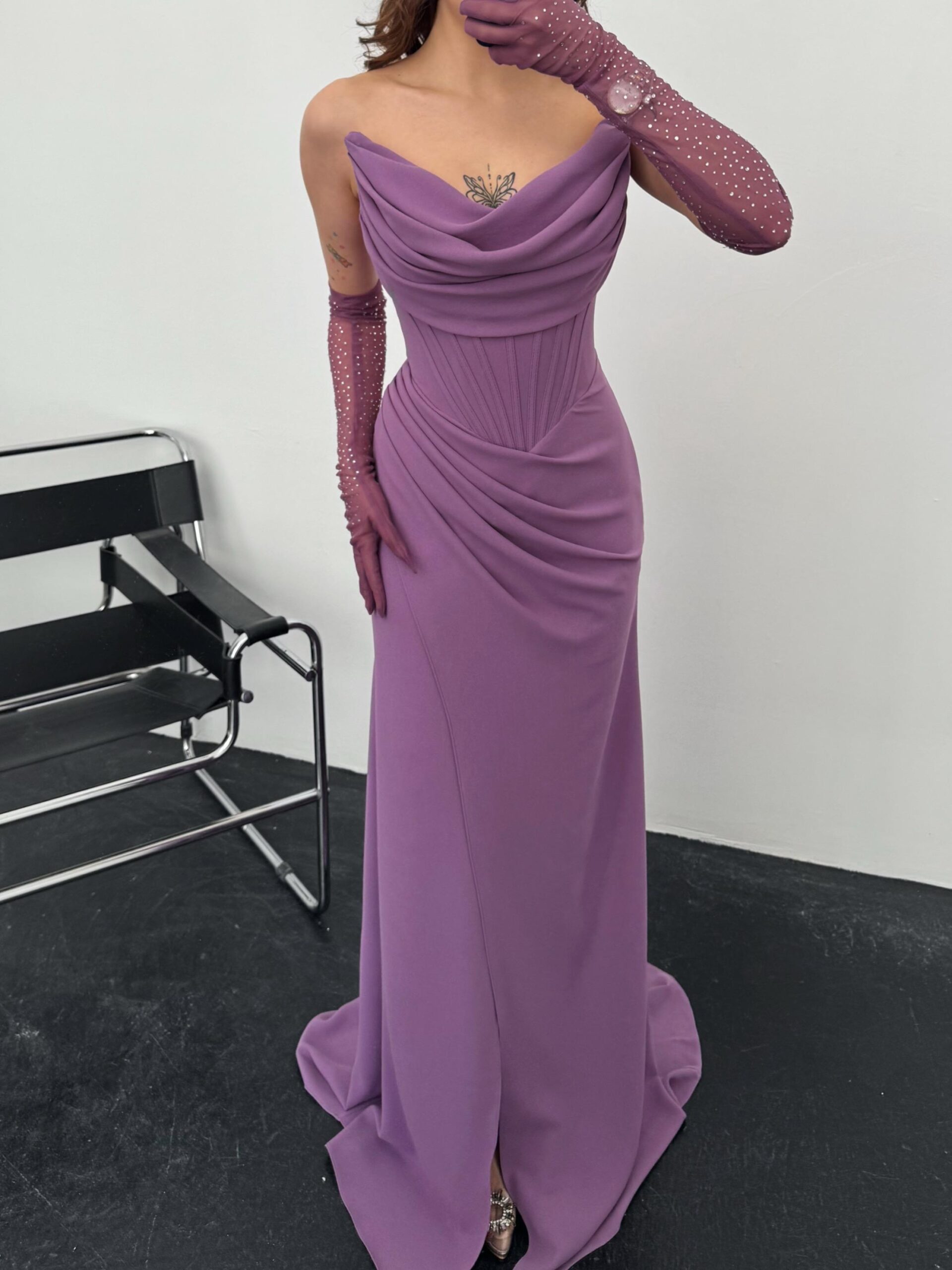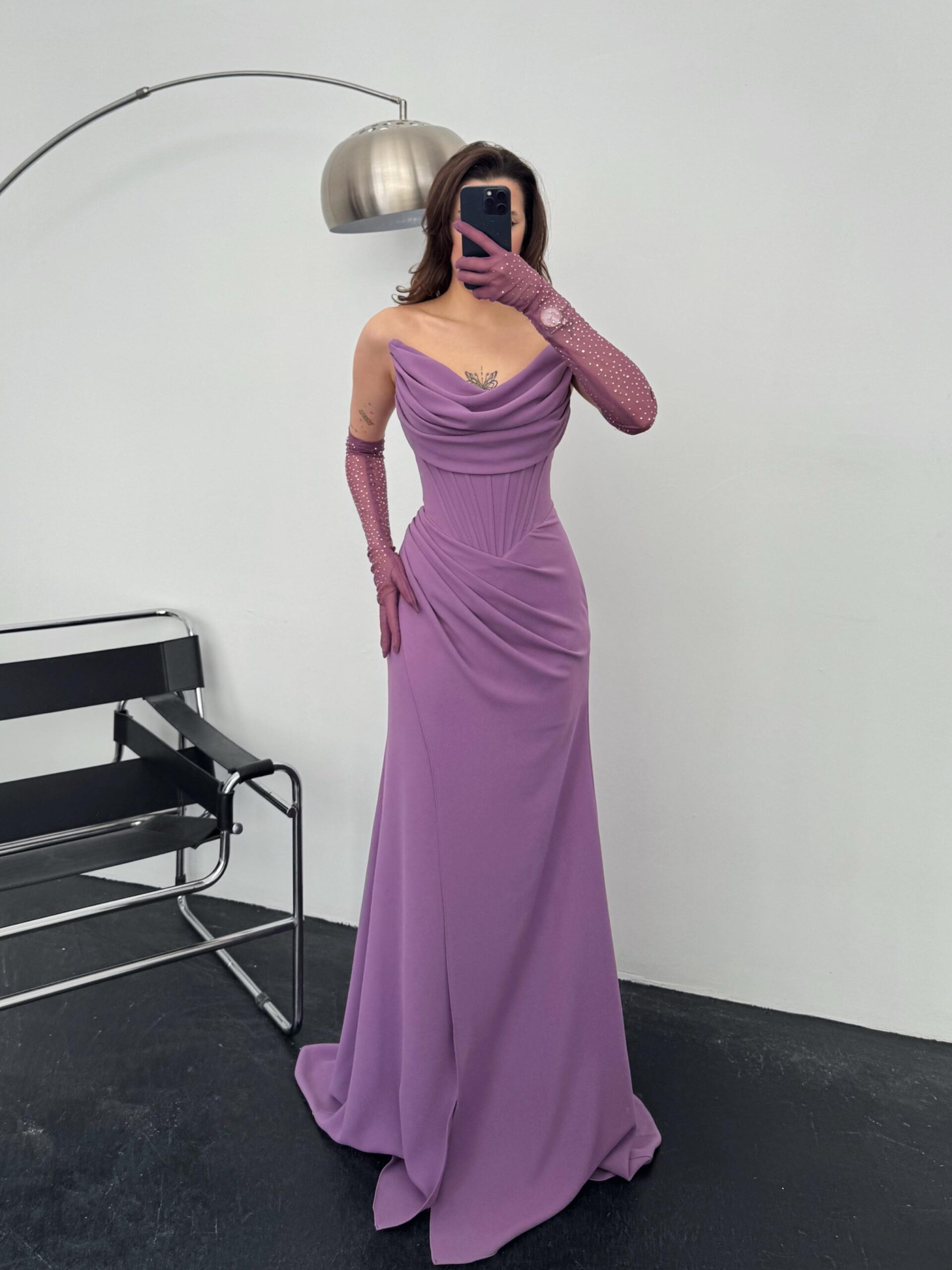 Ana Sayfa ÇOK SATANLAR Kleopatra Korse Detay Straplez Mor Abiye