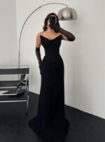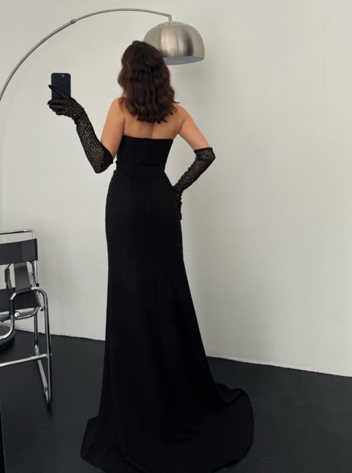 Kleopatra Korse Detay Straplez Siyah Abiye