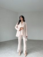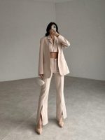 Pantolon paçası yırtmaçlıdır.