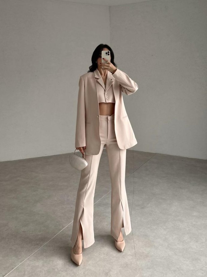 Krem Sıfır Yaka Ceketli LUDWİG Takım
