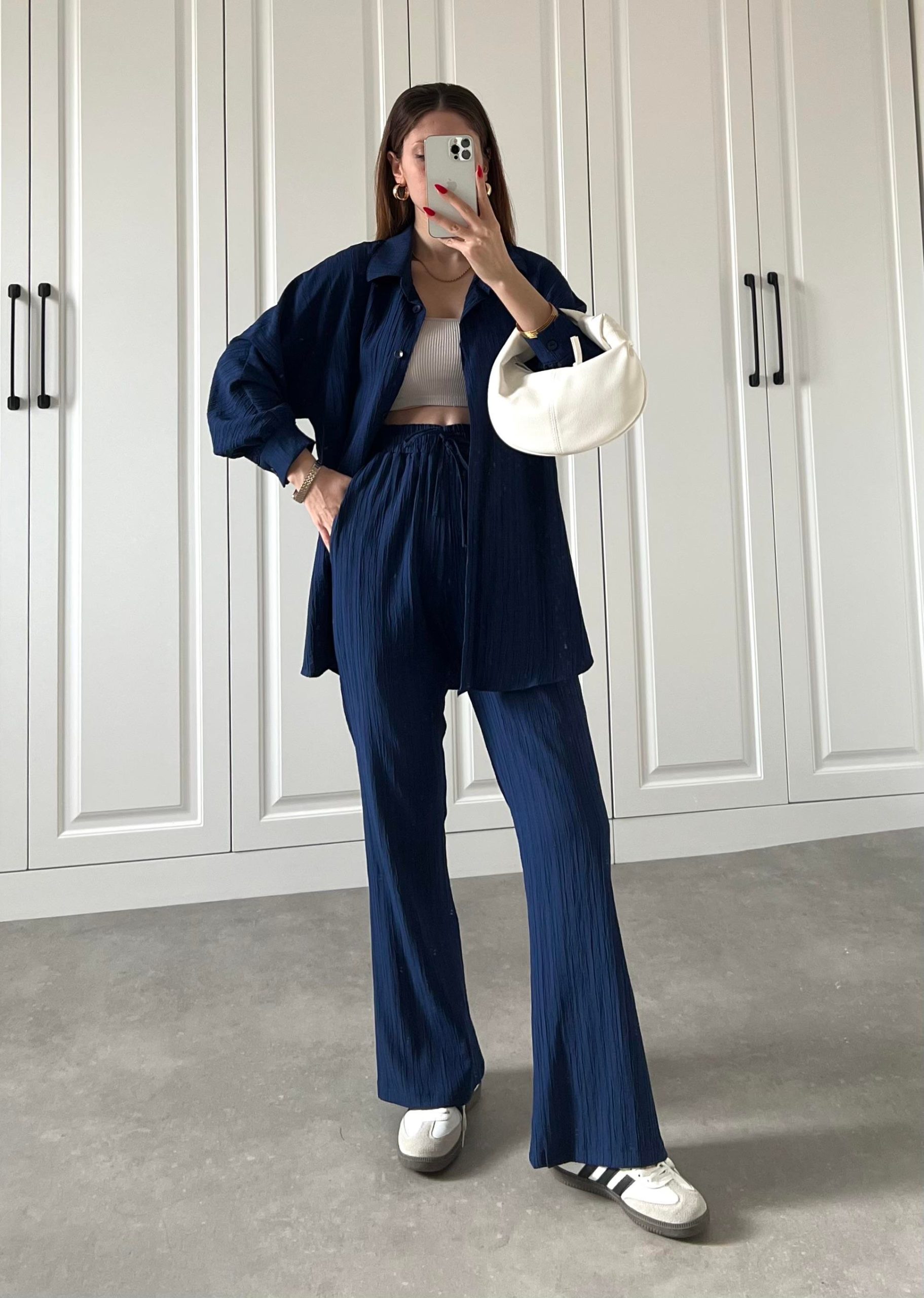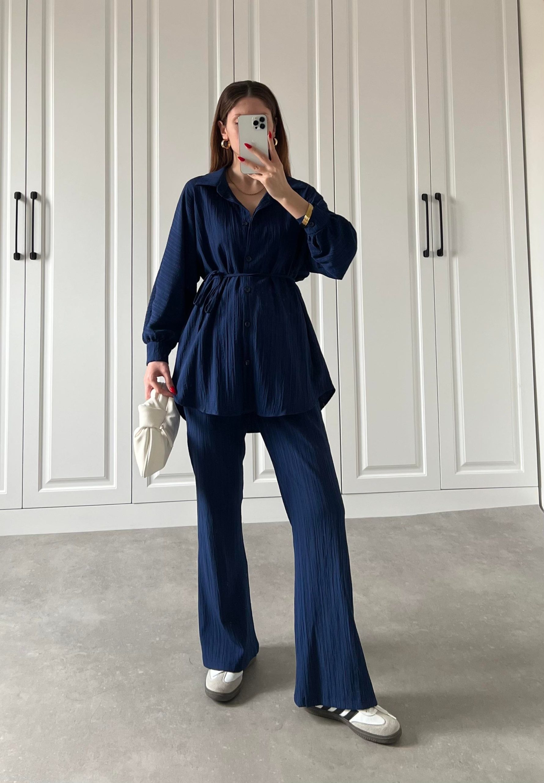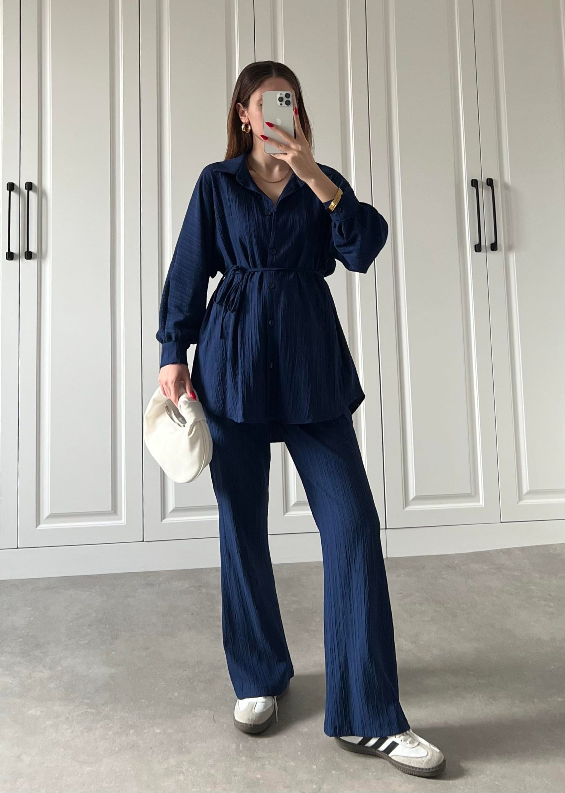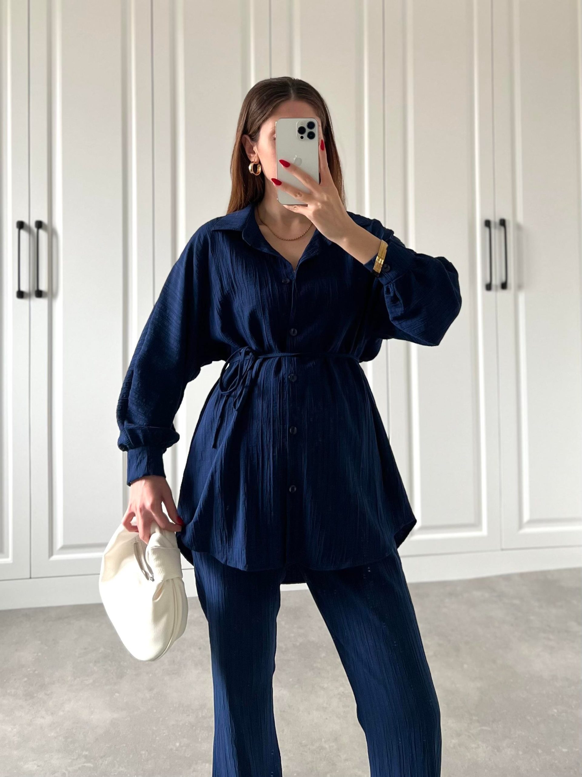 Ana Sayfa Yeni Sezon Lacivert Beli Kemerli Gofre İkili Takım
