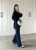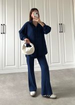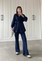 Lacivert Beli Kemerli Gofre İkili Takım