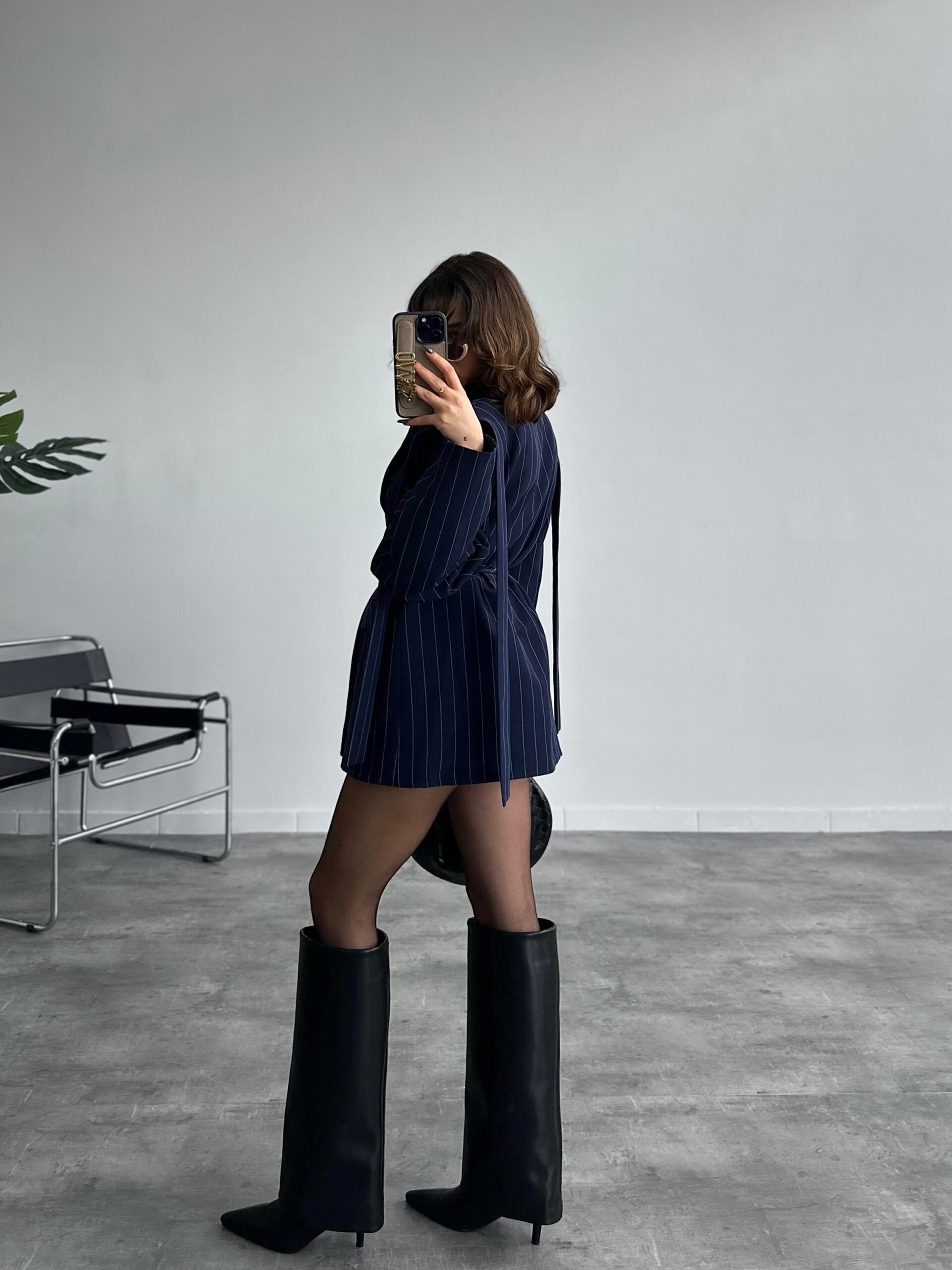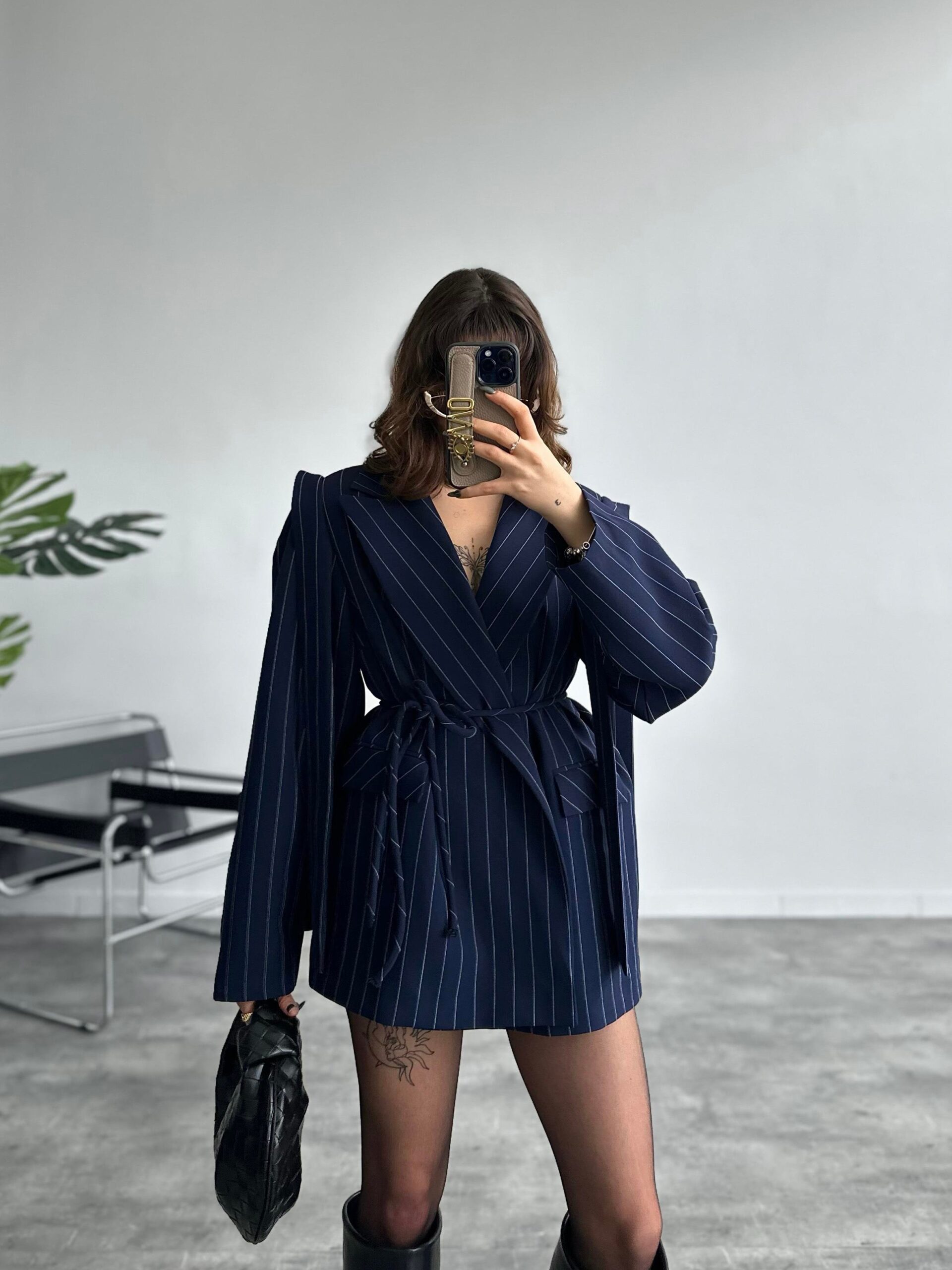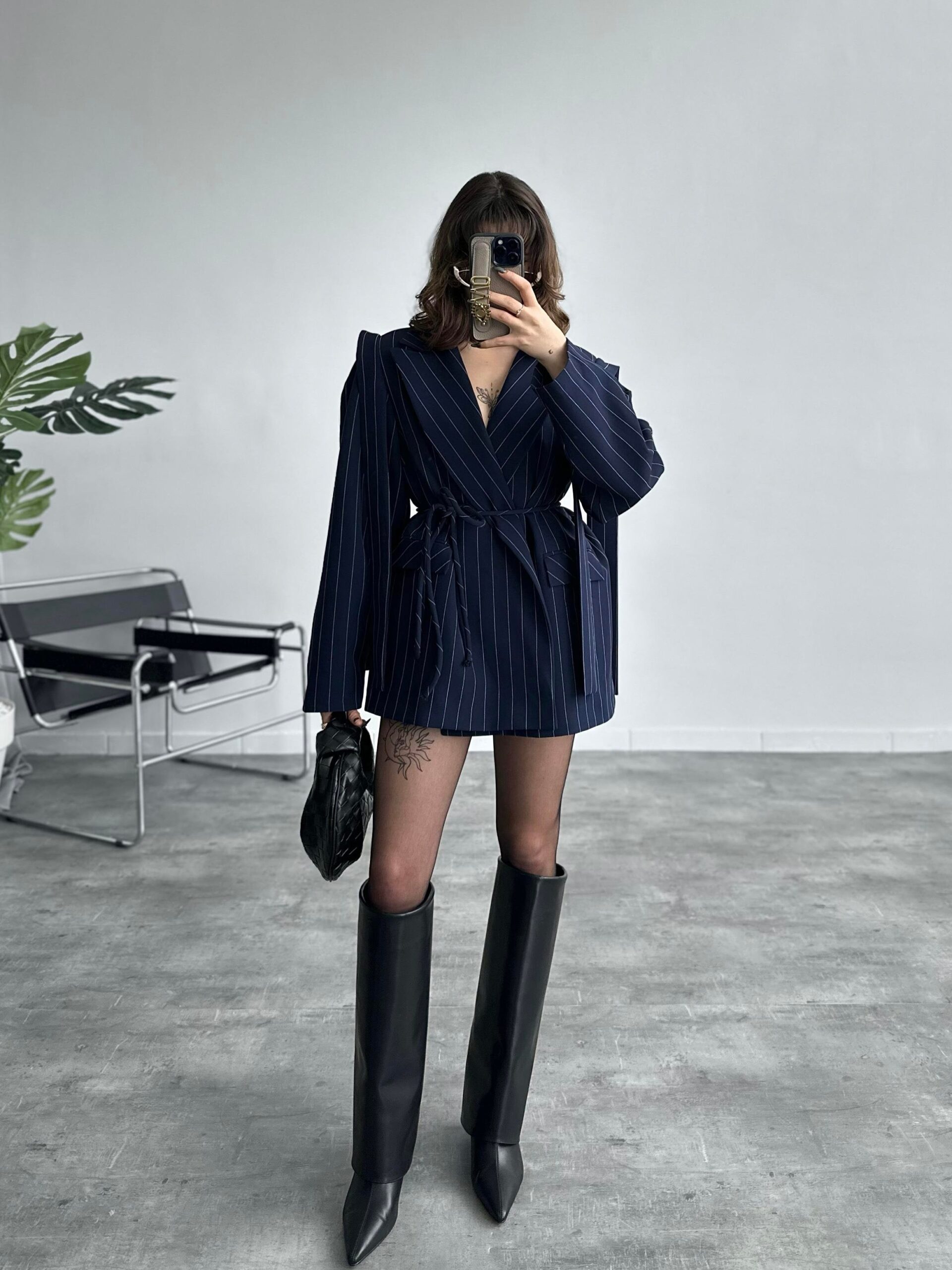 Ana Sayfa ÇOK SATANLAR Lacivert Mila Çizgili Premium Ceket