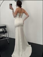 Ana Sayfa Elbise Lady Straplez Korse Detay Taşlı Beyaz Abiye