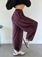 Maine Mor Kadife Dokulu Şalvar Pantolon