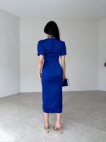 Ana Sayfa Elbise Mavi Bağlama Detaylı Midi POEMO Elbise