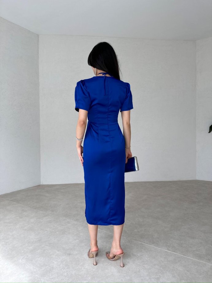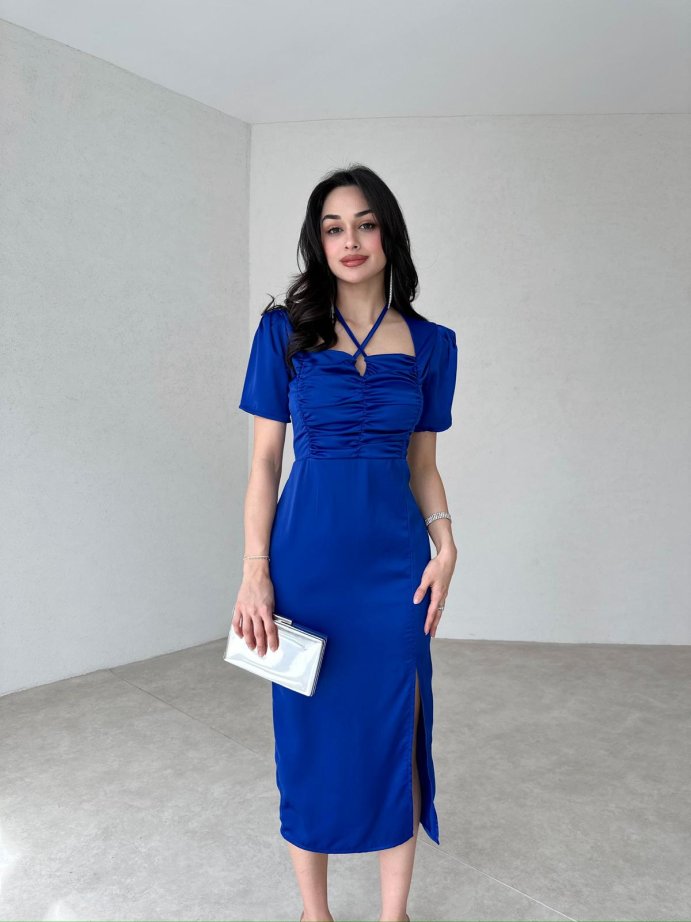 Mavi Bağlama Detaylı Midi POEMO Elbise
