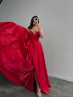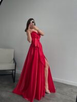 Melinda Straplez Saten Görünümlü Kırmızı Abiye
