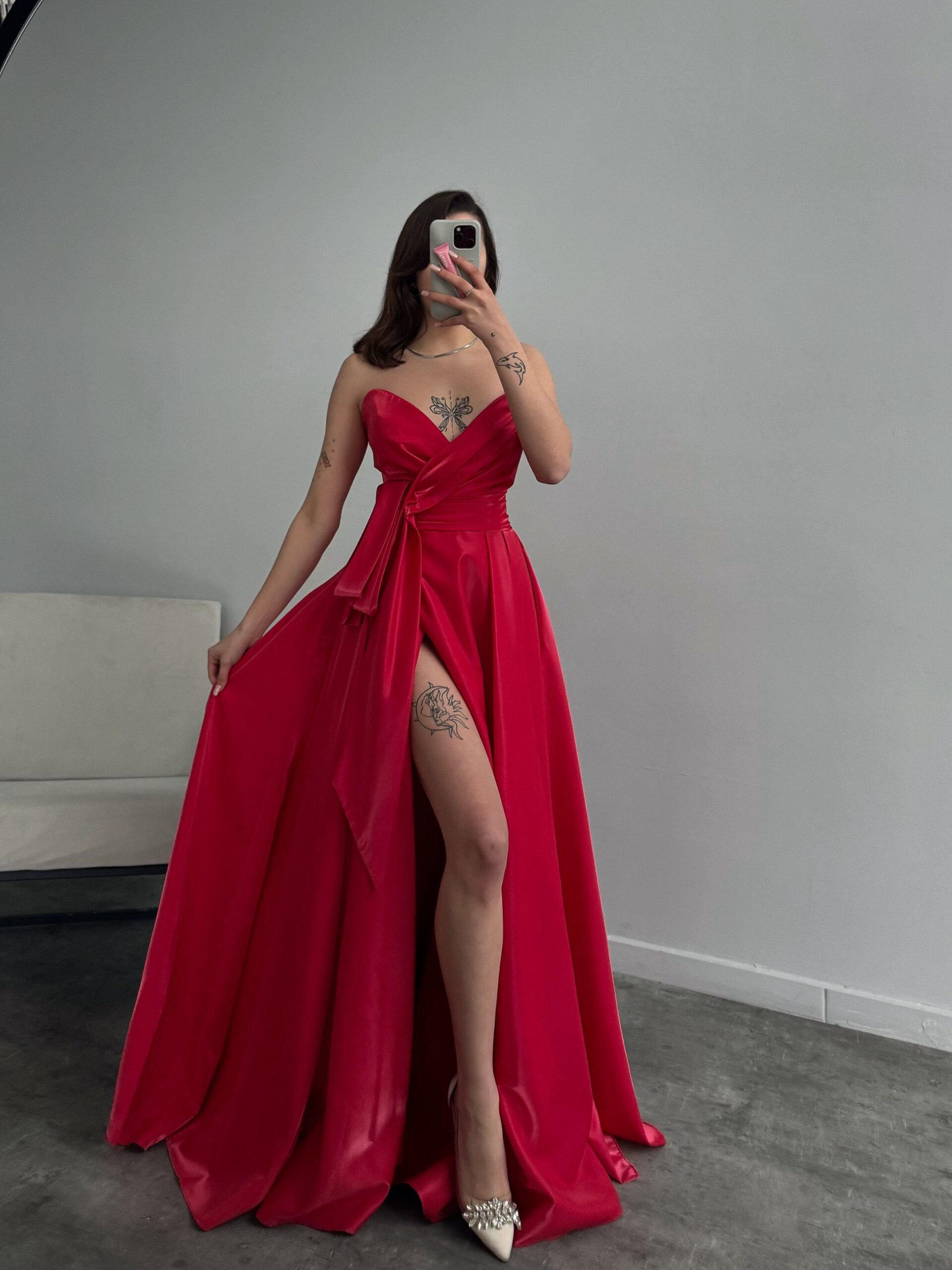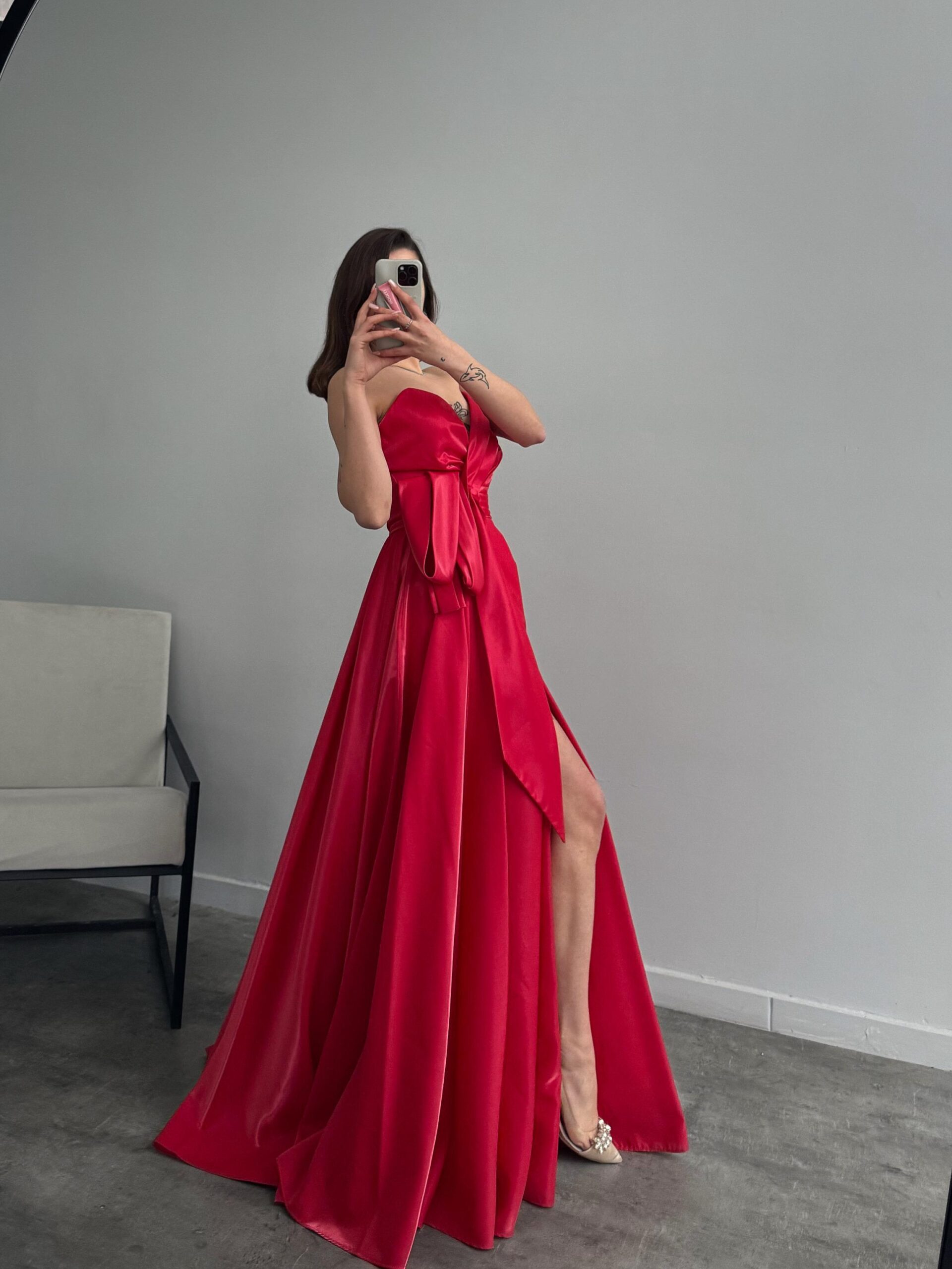Ana Sayfa ÇOK SATANLAR Melinda Straplez Saten Görünümlü Kırmızı Abiye