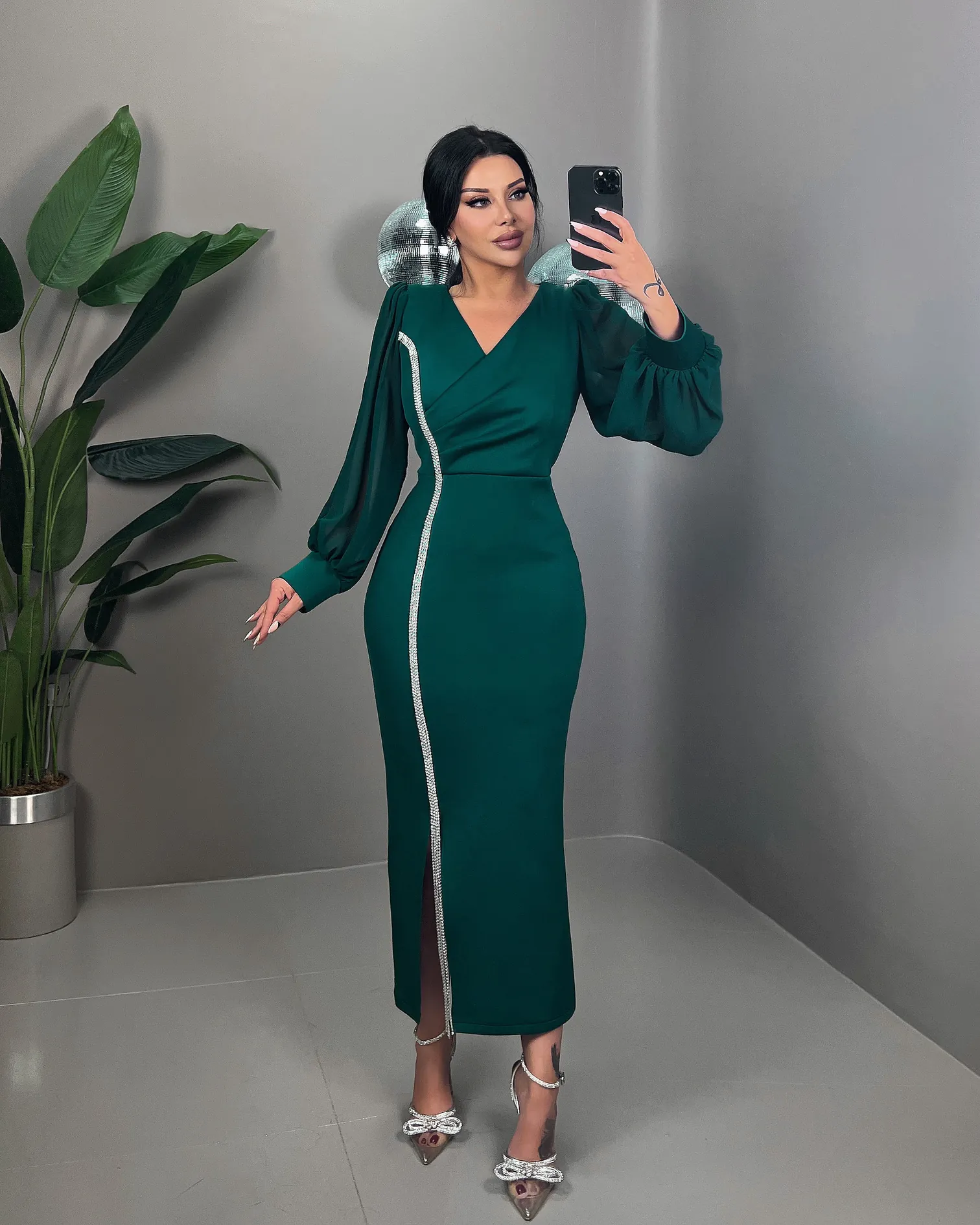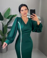 •𝗨̈𝗿𝘂̈𝗻 𝗱𝗲𝘁𝗮𝘆𝗹𝗮𝗿ı:Likralı scuba kumaş, organze şifon balon kol kesim, şerit taş detay yırtmaç ucu sarkaç taş, arkadan gizli fermuar, astarsız.