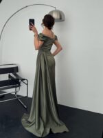 Miusa Yırtmaç Detay Balon Kol Haki Abiye
