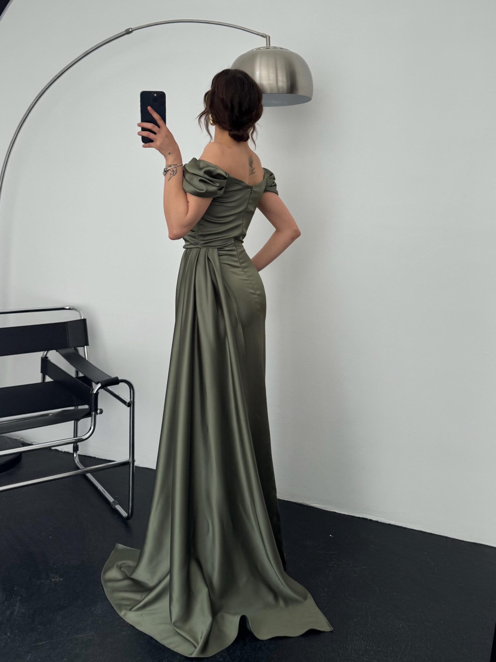 Ana Sayfa ÇOK SATANLAR Miusa Yırtmaç Detay Balon Kol Haki Abiye
