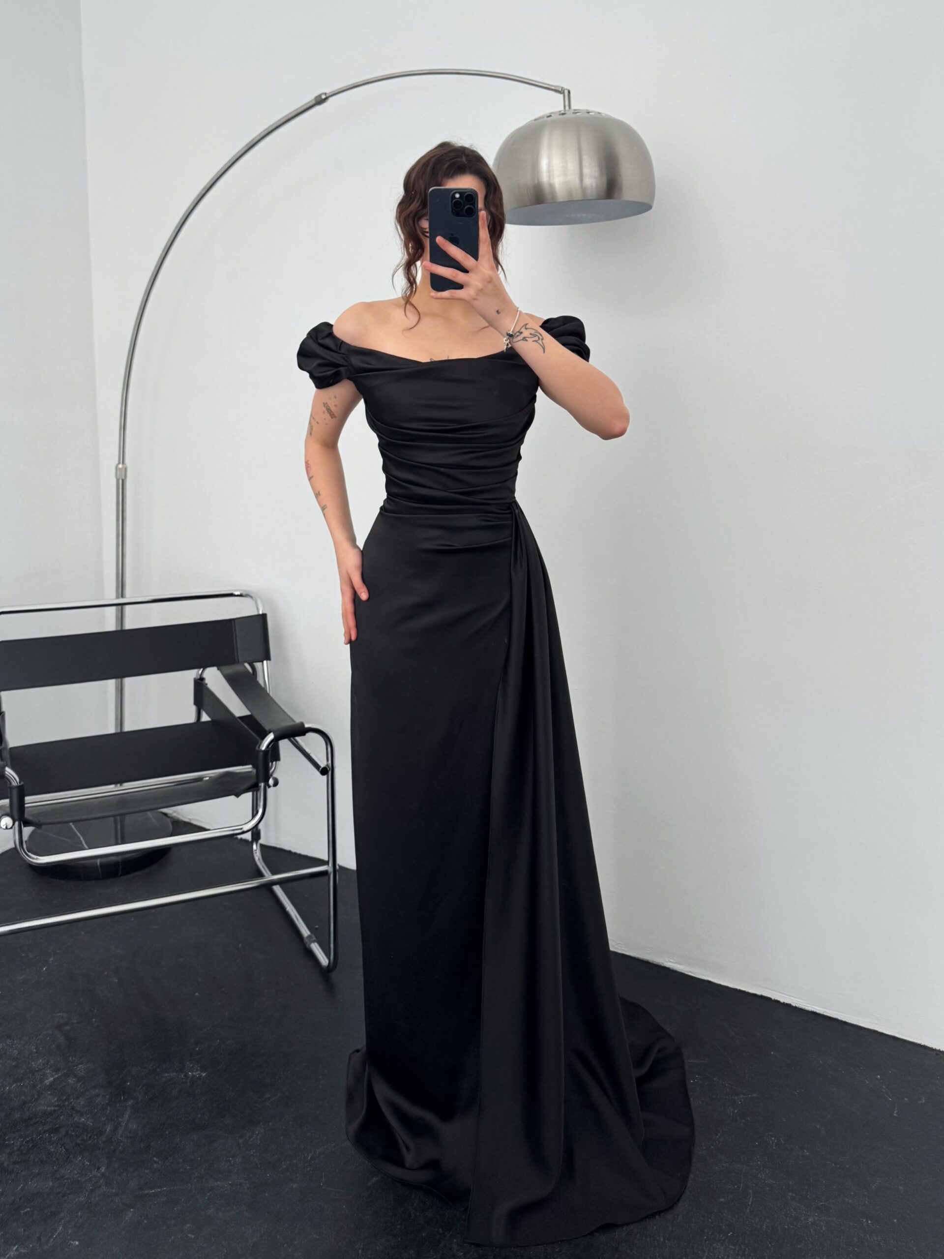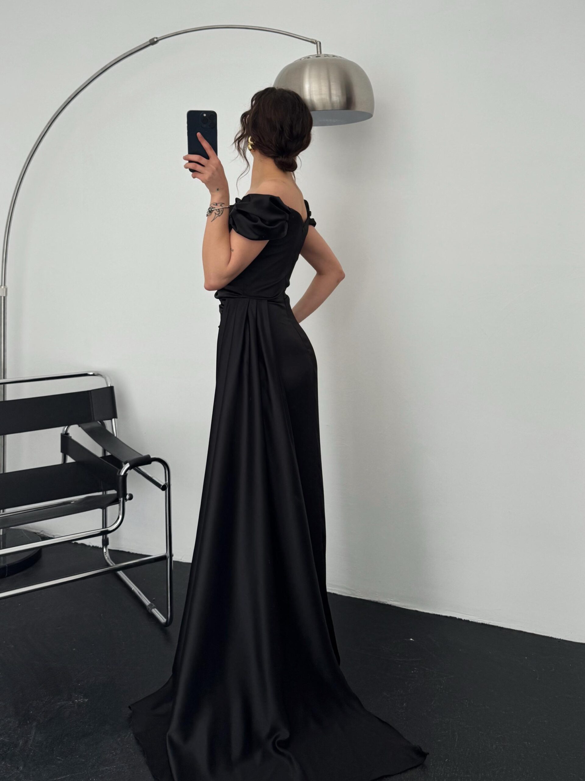 Ana Sayfa ÇOK SATANLAR Miusa Yırtmaç Detay Balon Kol Siyah Abiye