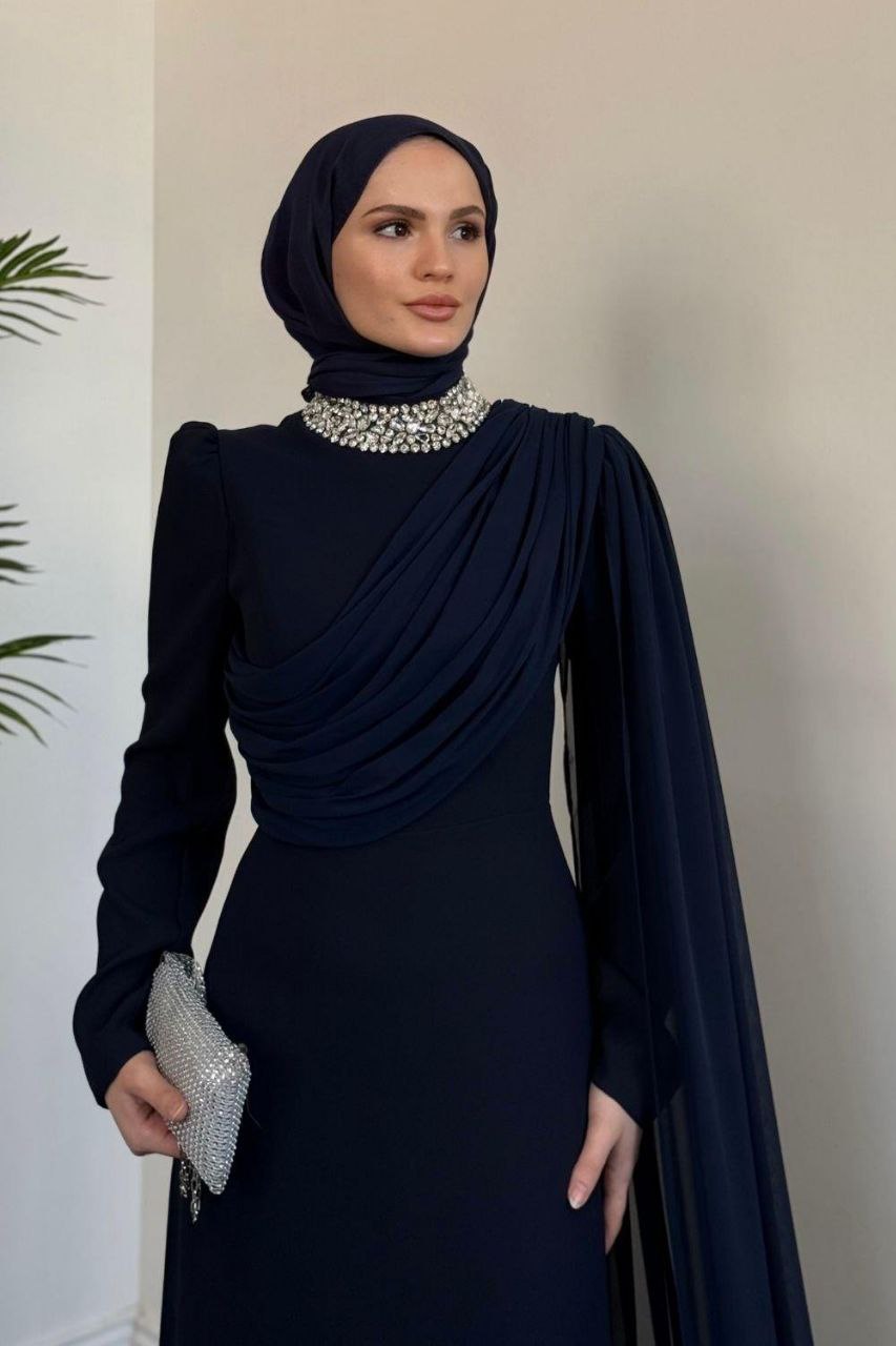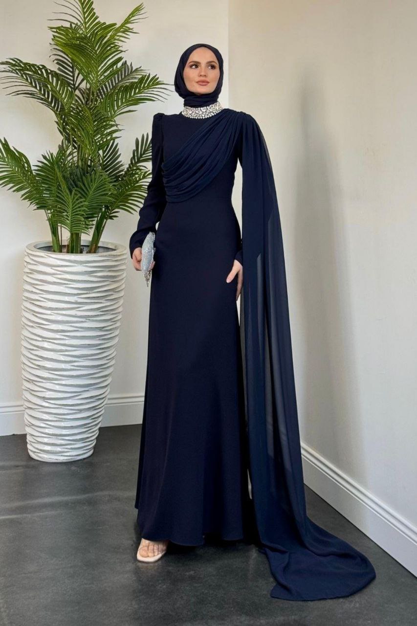 Ana Sayfa ÇOK SATANLAR Olara Yandan Pelerinli Abiye Lacivert