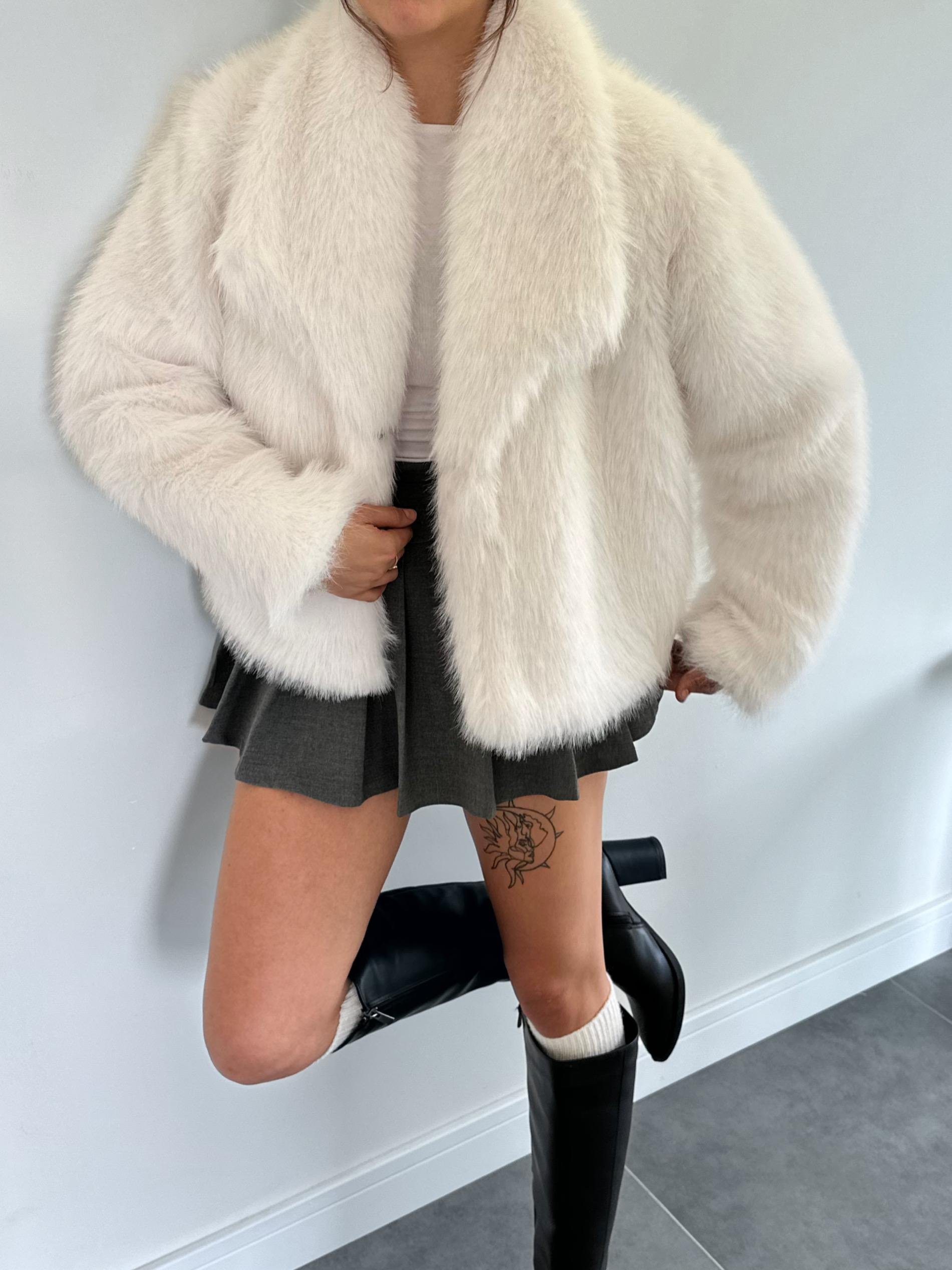 Ana Sayfa ÇOK SATANLAR Paulina Şal Beyaz Kürk Ceket