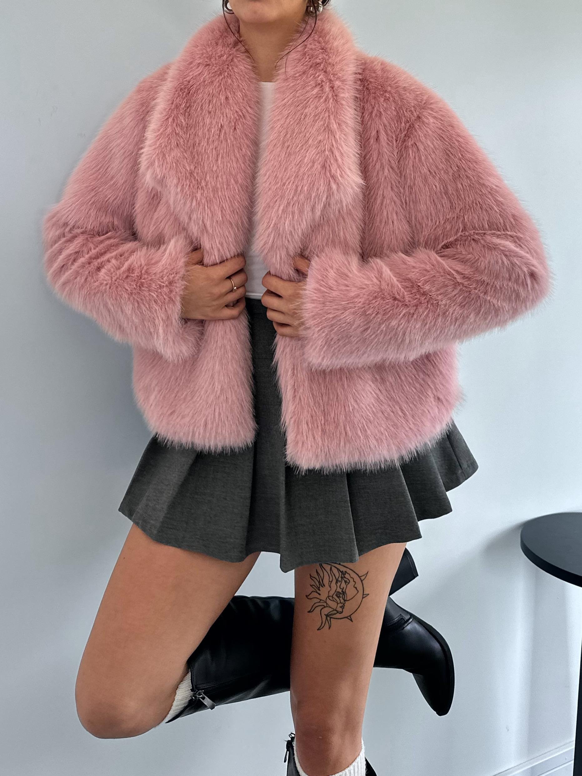 Ana Sayfa ÇOK SATANLAR Paulina Şal Pembe Kürk Ceket