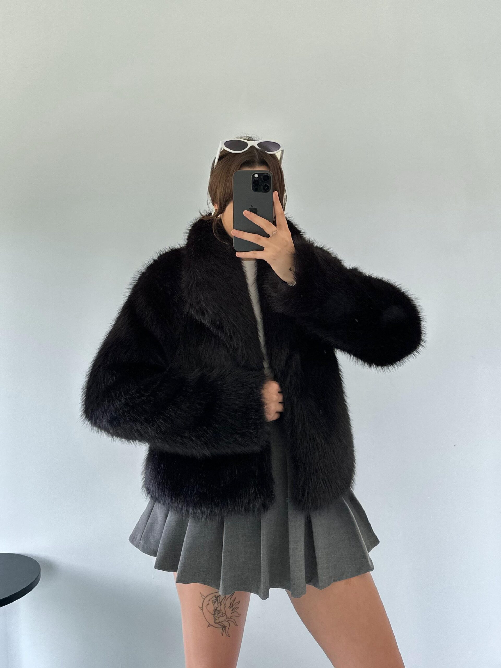 Paulina Şal Yaka Siyah Kürk Ceket