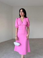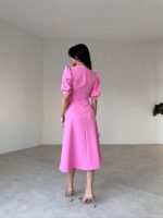 Pembe İnci Düğme Detaylı Yarım Kol Midi GABRİEL Elbise