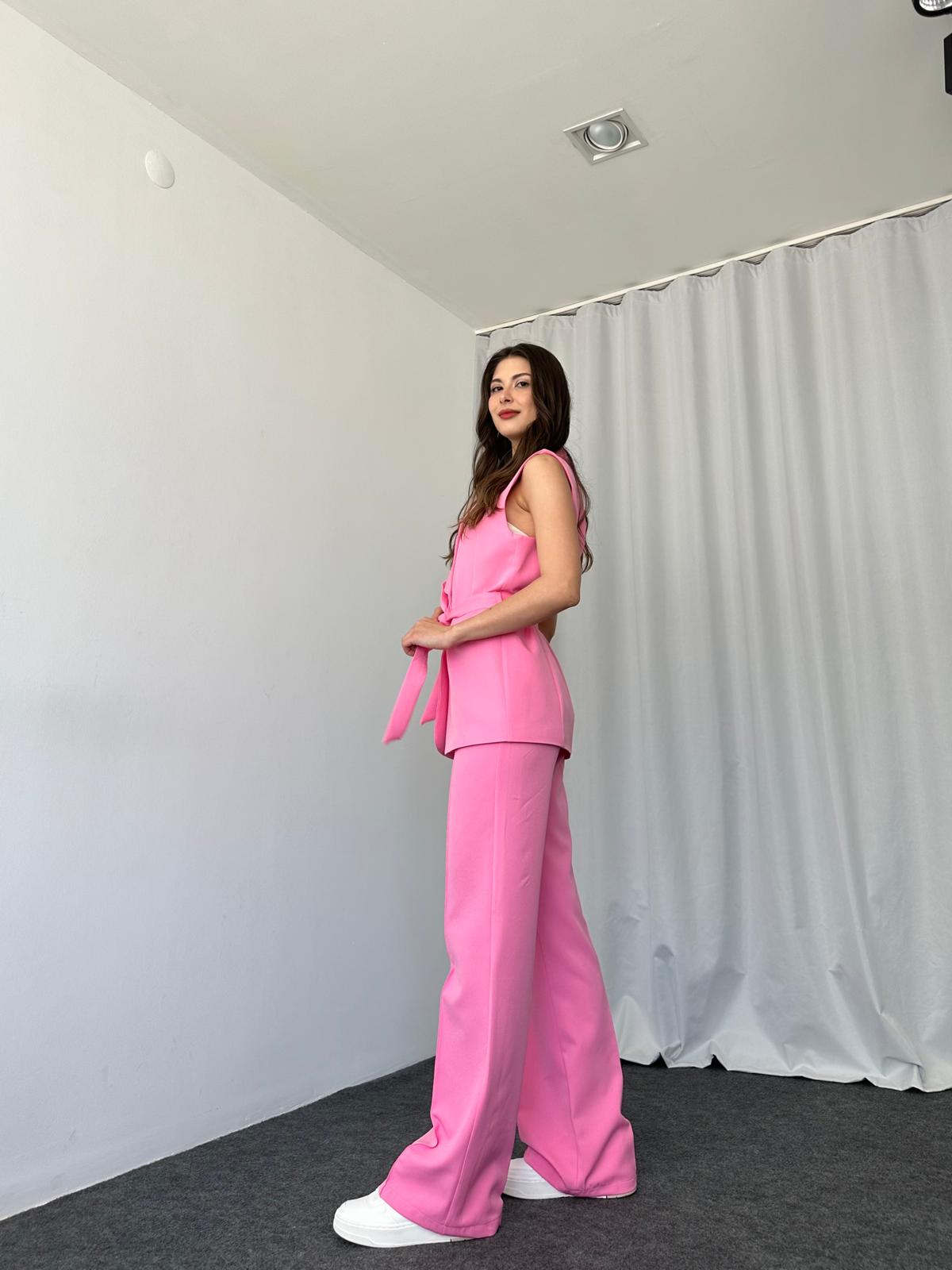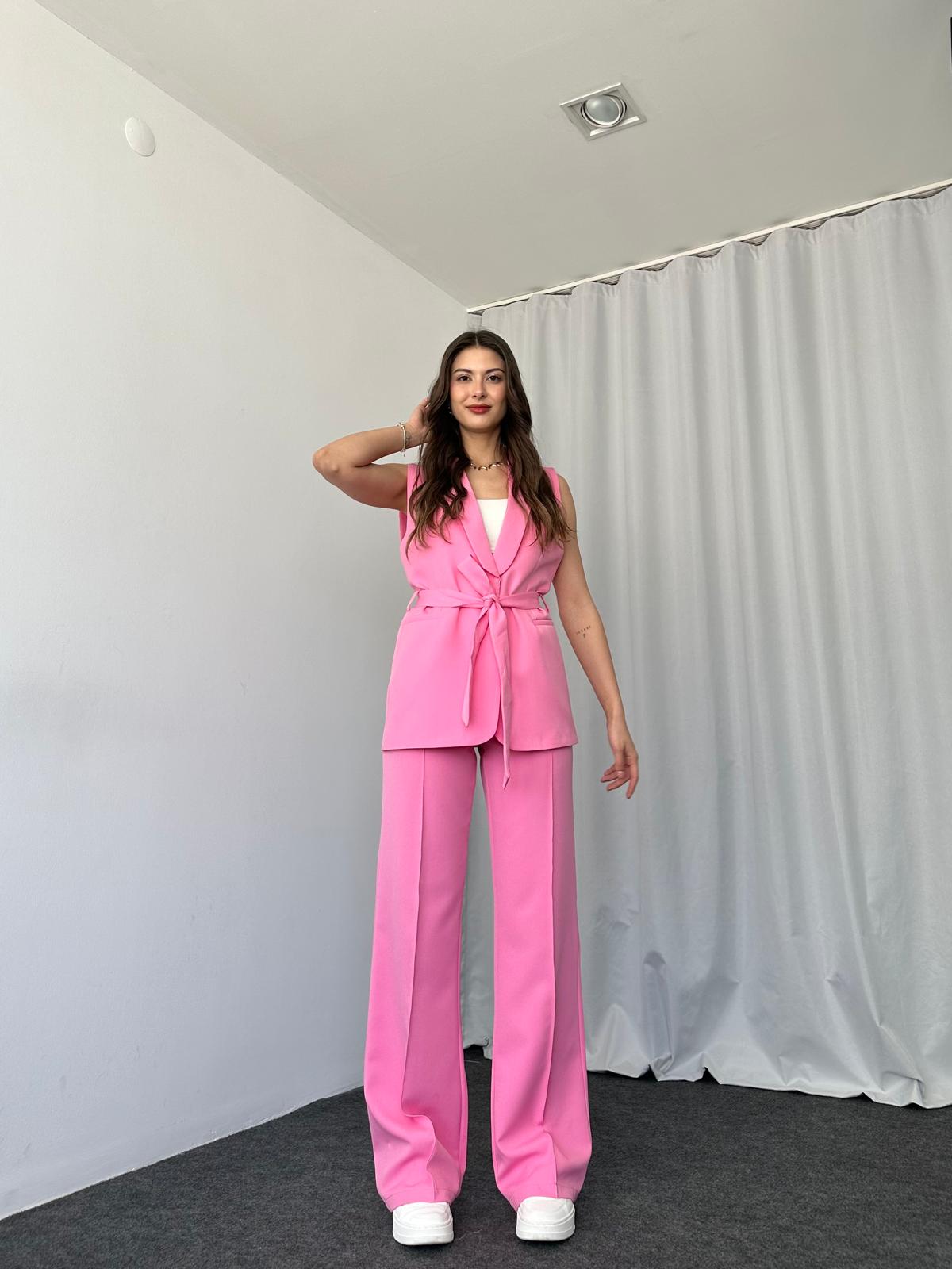 Ana Sayfa Takım Pembe Kuşaklı Yelek Pantolon takım