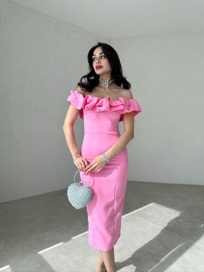 Pembe Midi SOPHİA Elbise