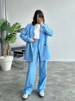 Ana Sayfa YENİ GELENLER Port Bebe Mavisi Koton Kumaş Blazer Takım