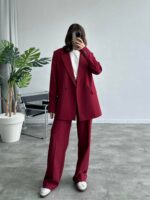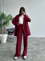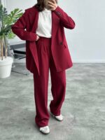 Port Bordo Koton Kumaş Blazer Takım