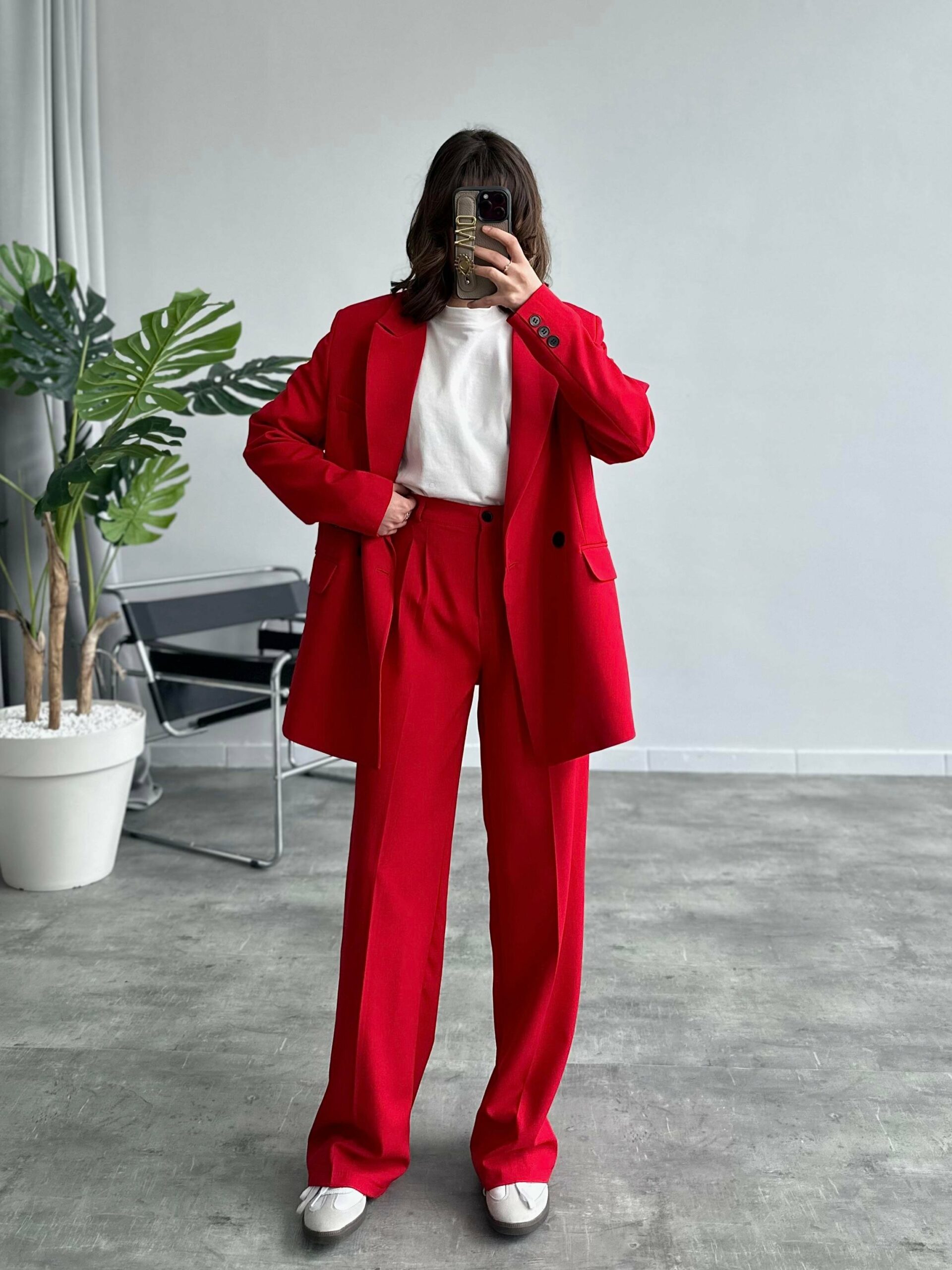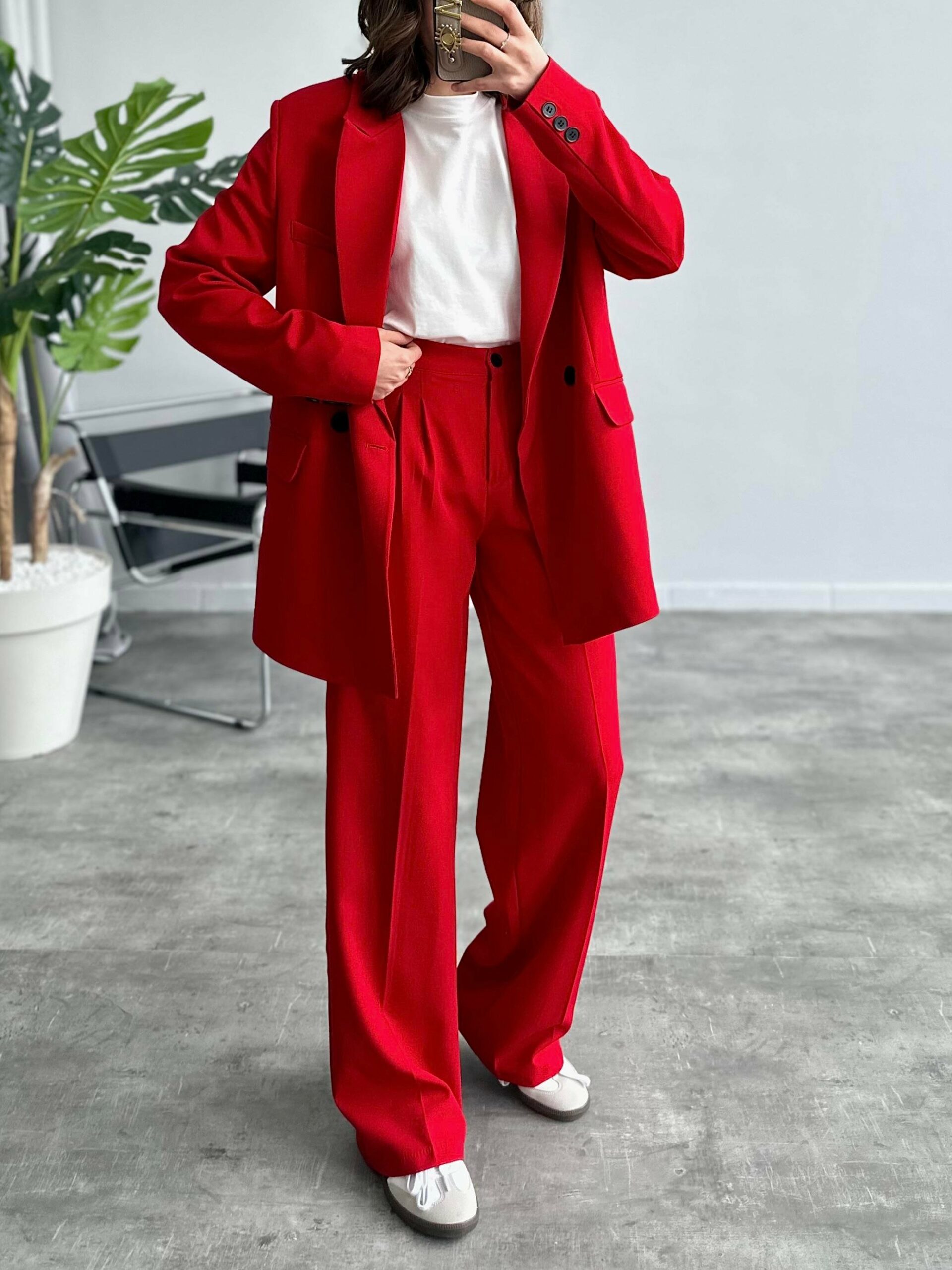 Ana Sayfa ÇOK SATANLAR Port Kırmızı Koton Kumaş Blazer Takım