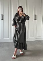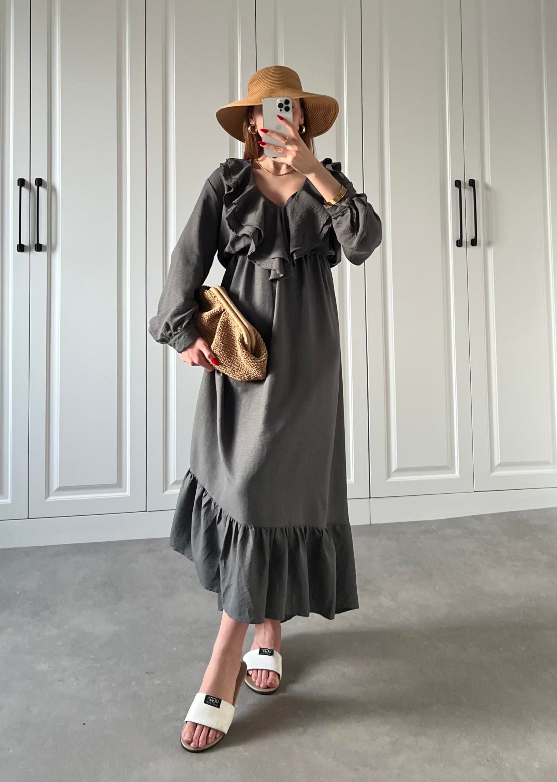 Ana Sayfa Elbise Premium Volanlı Antrasit Aerobin Elbise