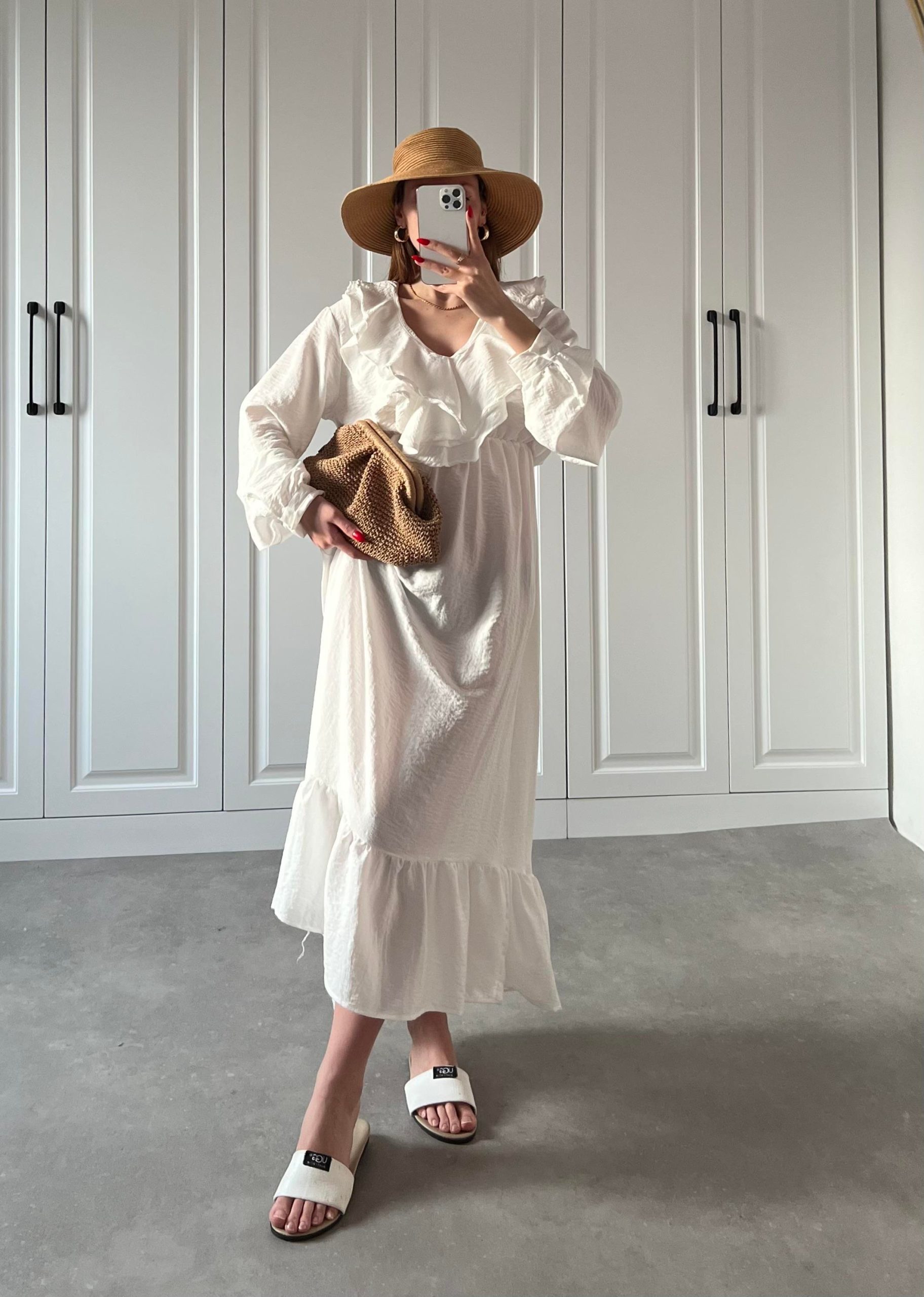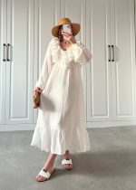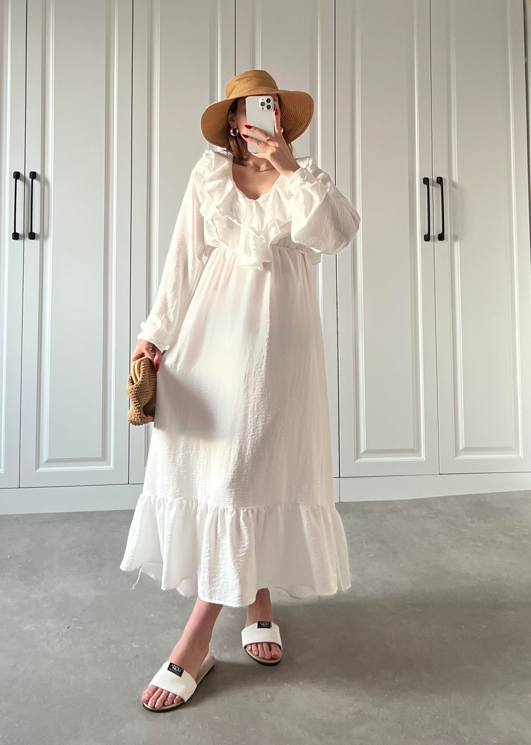 Ana Sayfa Elbise Premium Volanlı Beyaz Aerobin Elbise