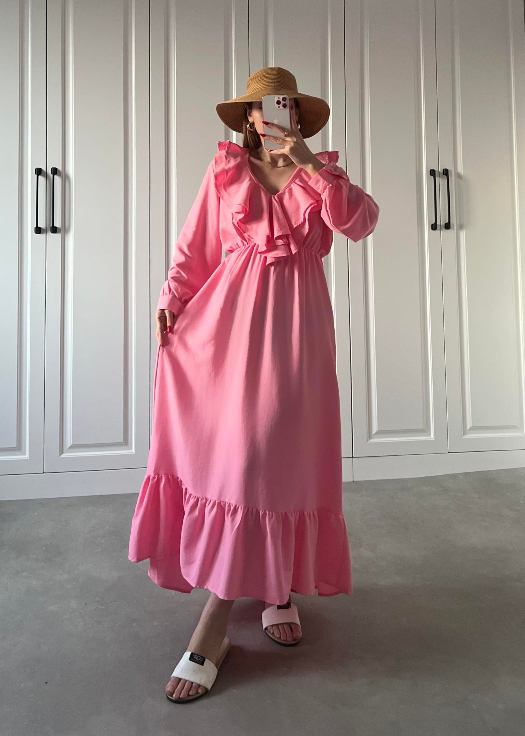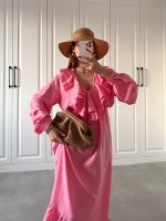 Pembe Fırfırlı Askılı Elbise