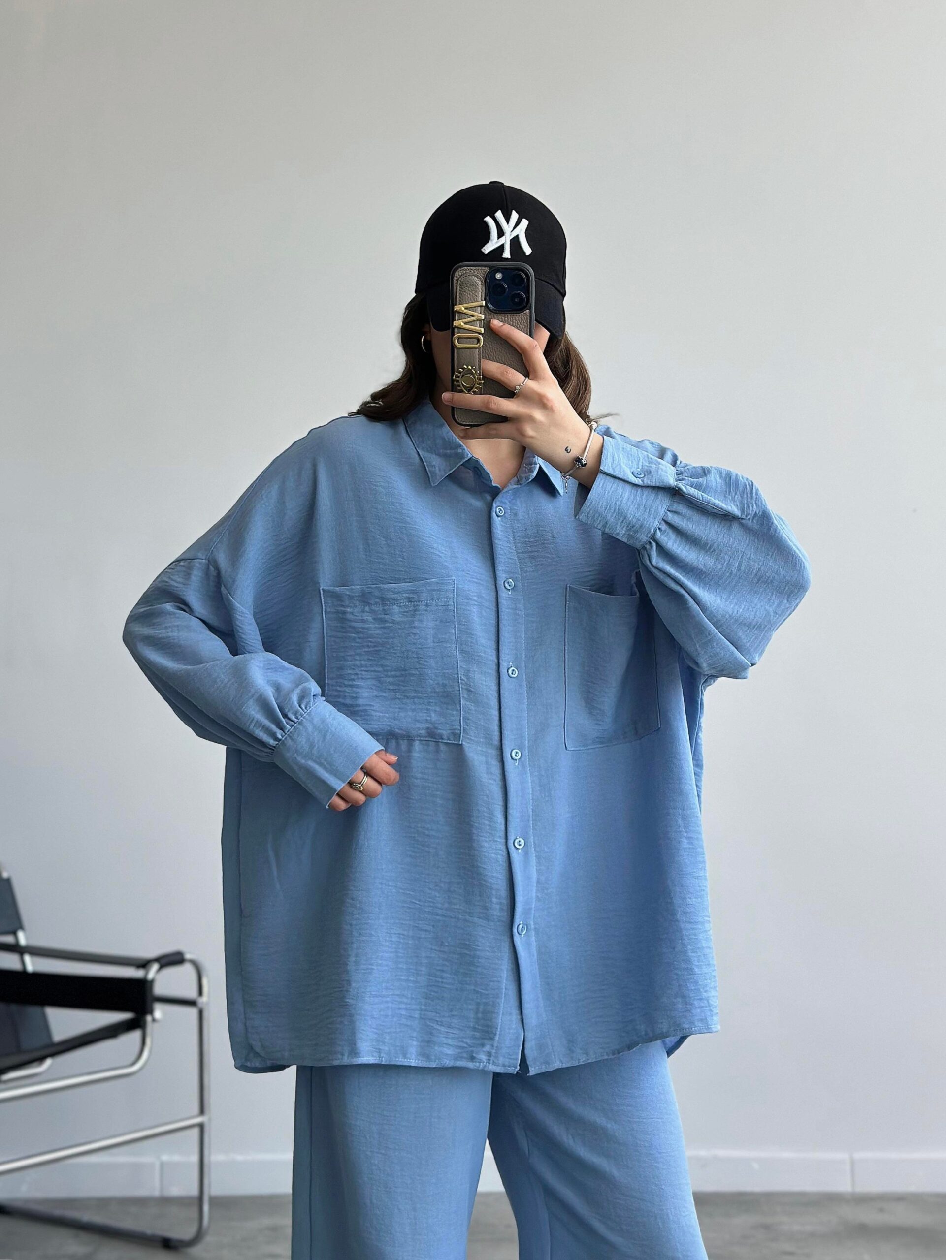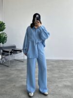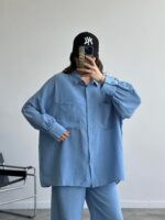 Turkuaz Krinkıl Basic Gömlek Takım