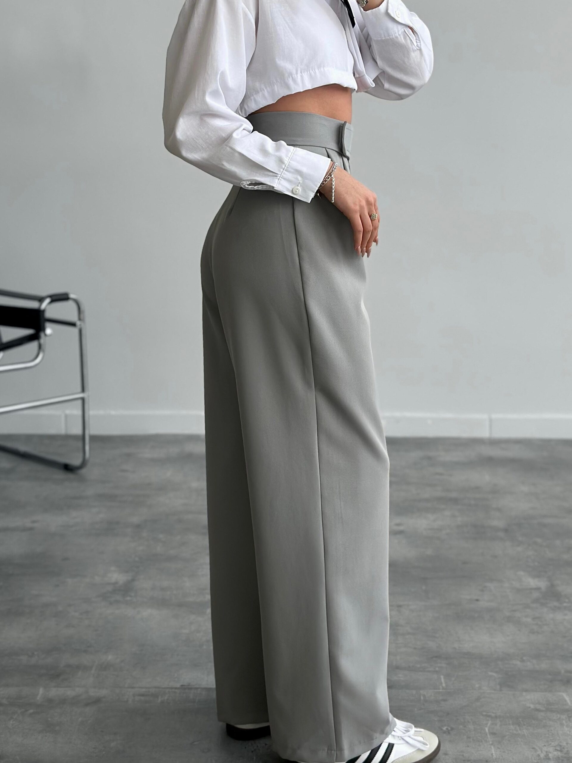 Redkit Cırt Kapamalı Gri Palazzo Pantolon