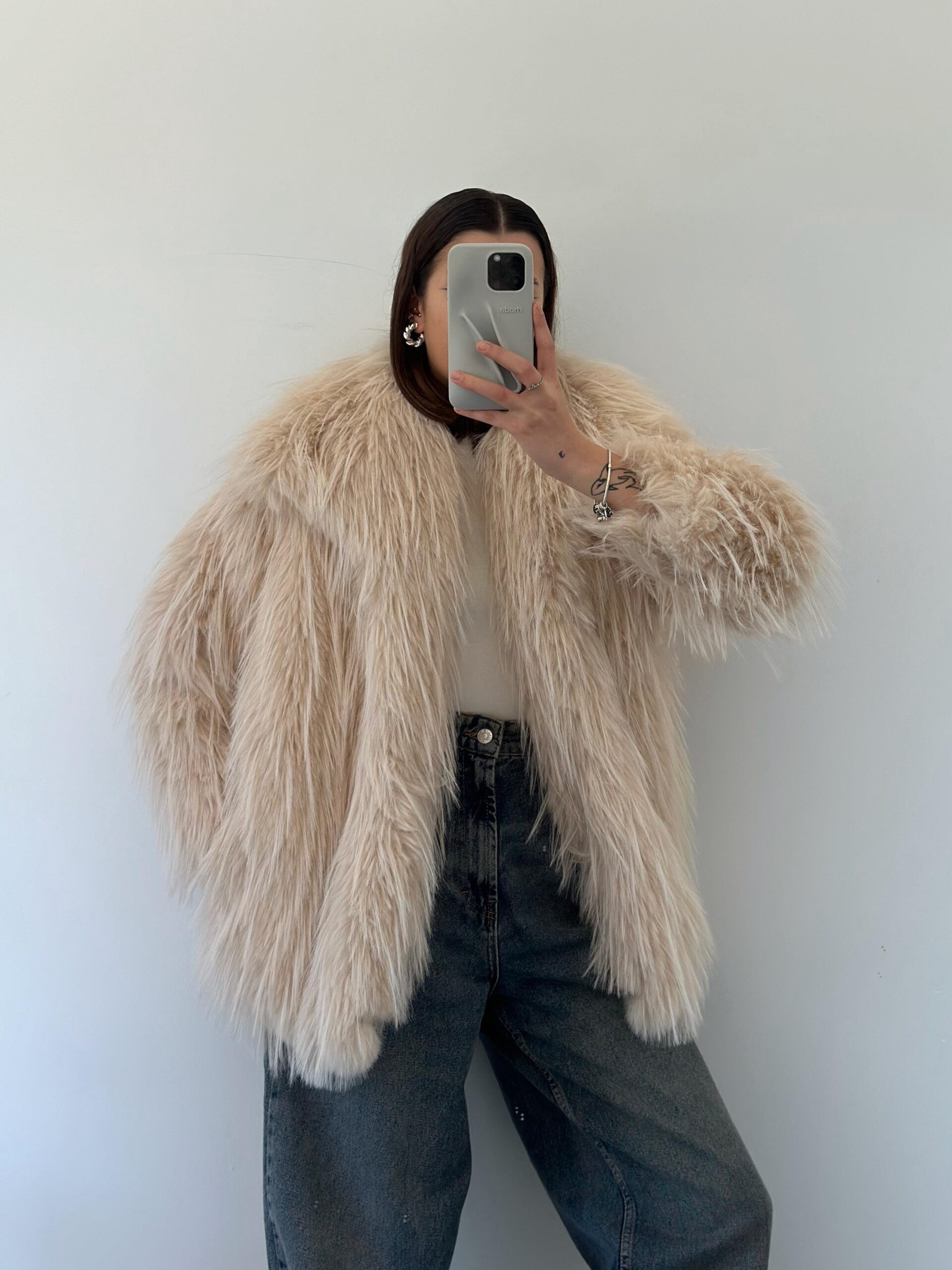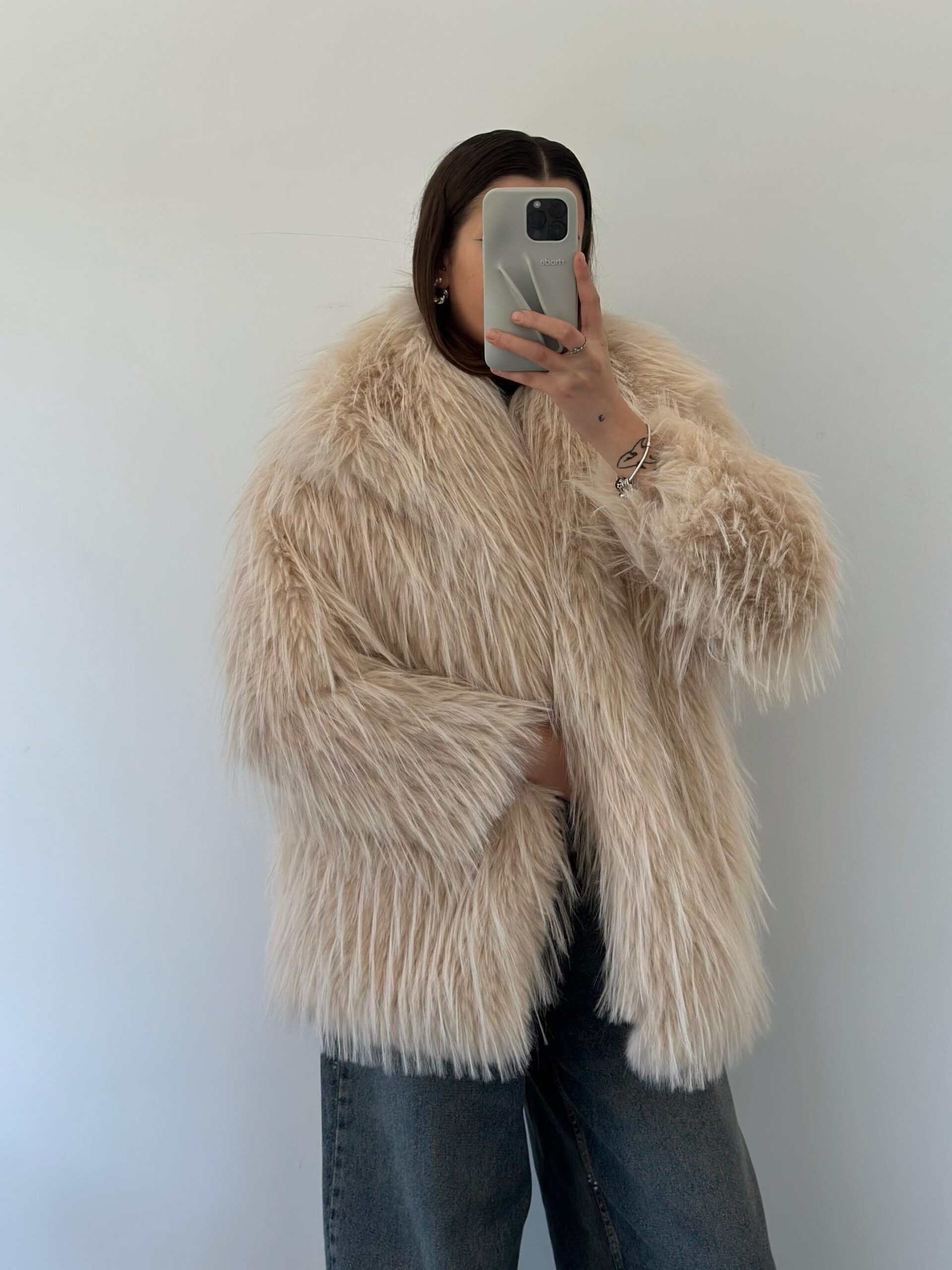 Ana Sayfa ÇOK SATANLAR Rosalie Şal Yaka Cep Detay Ekru Uzun Kürk Ceket