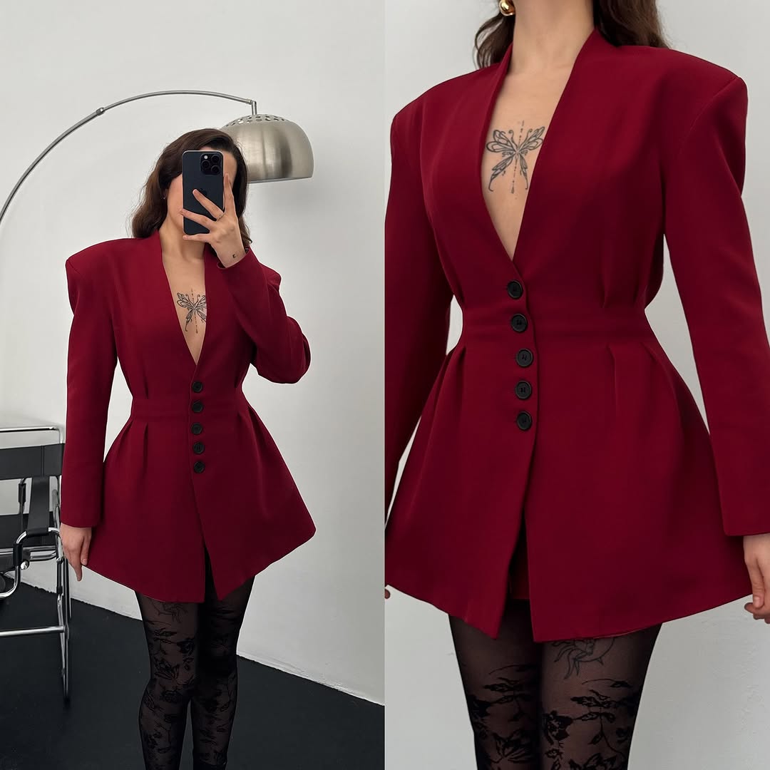 Ana Sayfa ÇOK SATANLAR Rosina Bordo Belden Oturtmalı Vatkalı Ceket Etek Takım