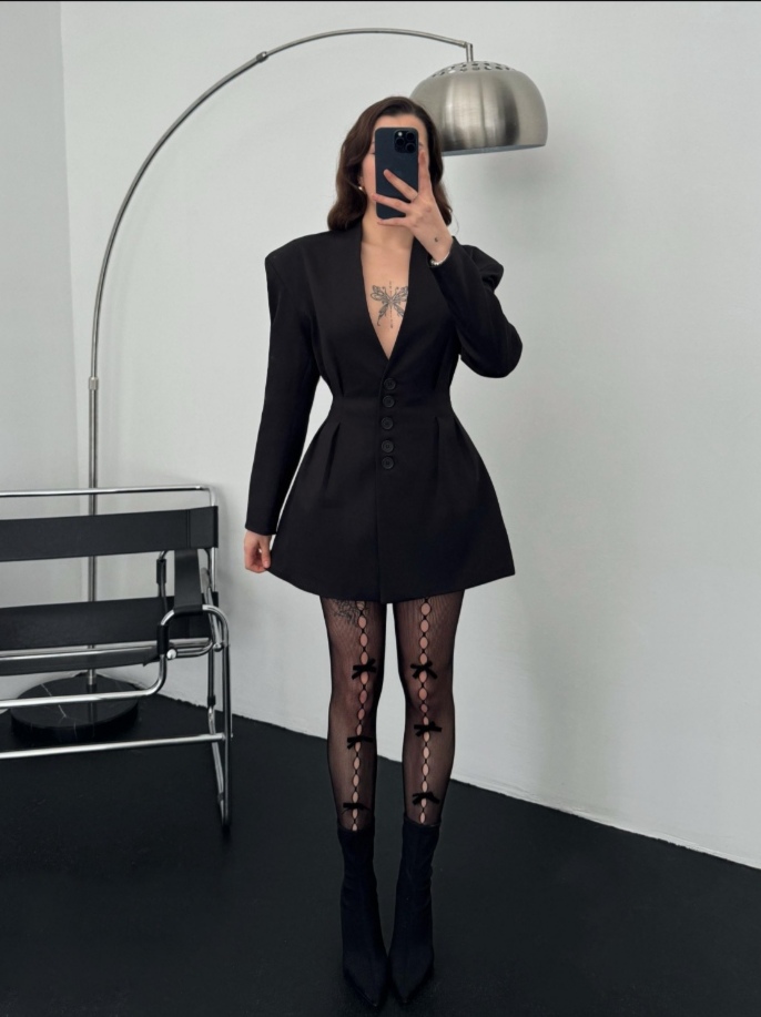 Rosina Siyah Belden Oturtmalı Vatkalı Ceket Etek Takım