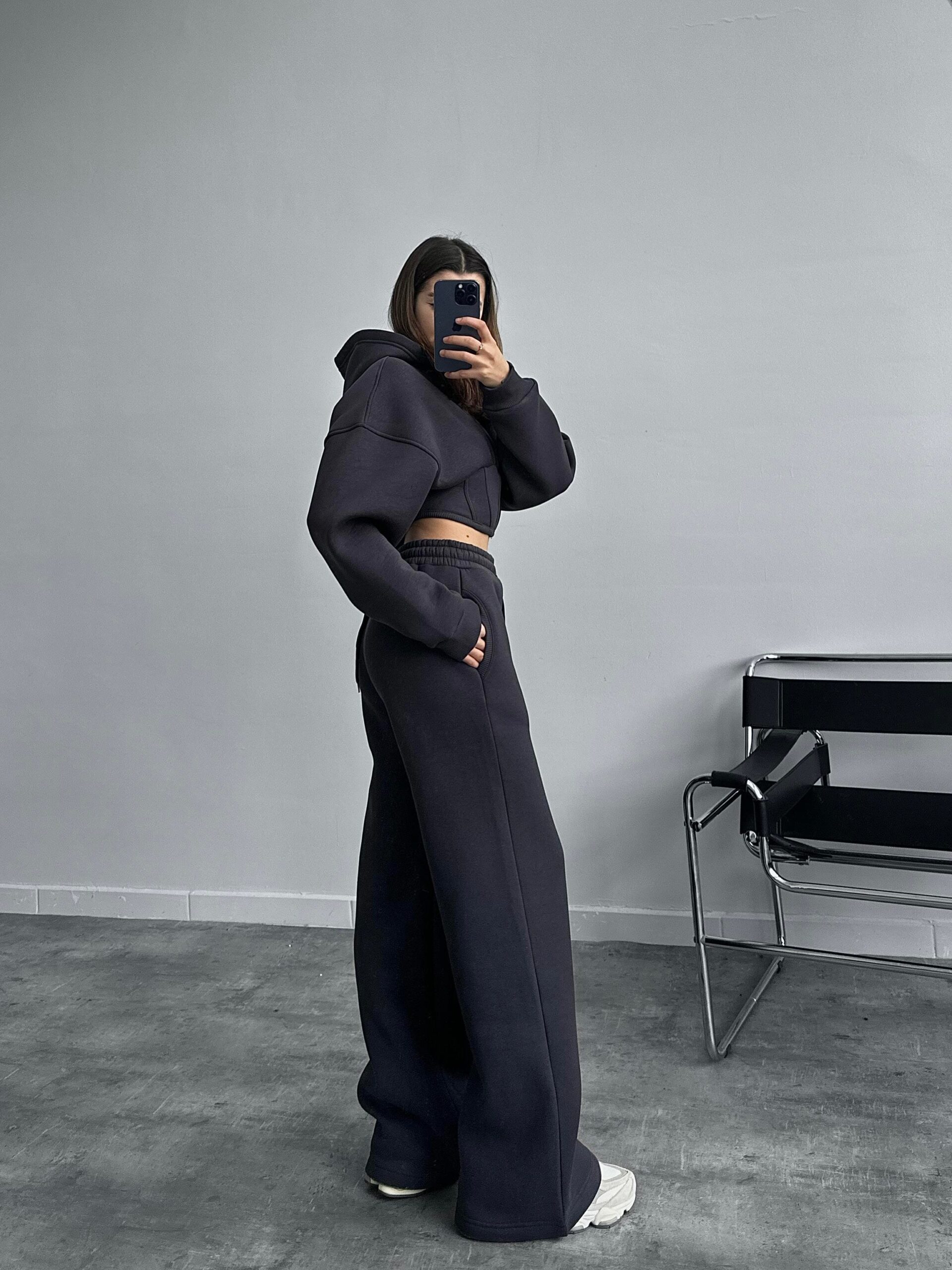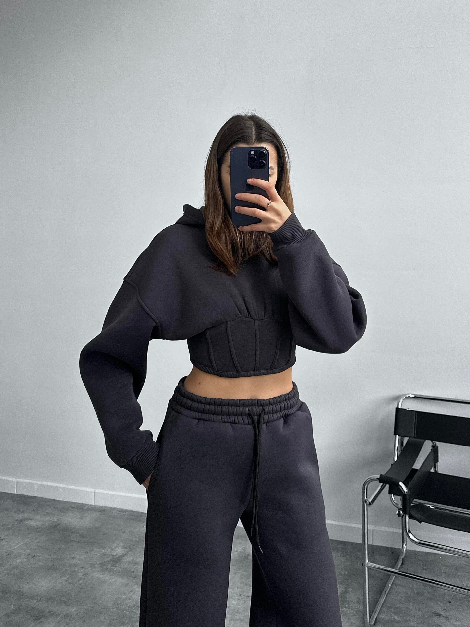 Rosso Korse Crop Antrasit Eşofman Takımı