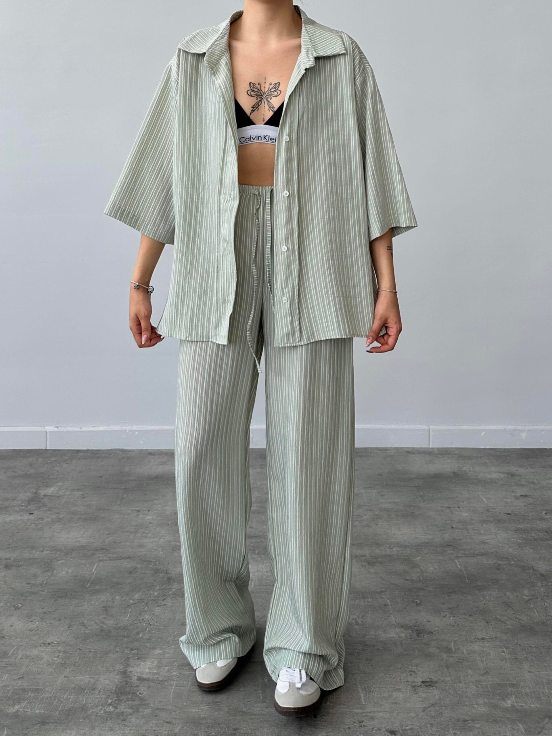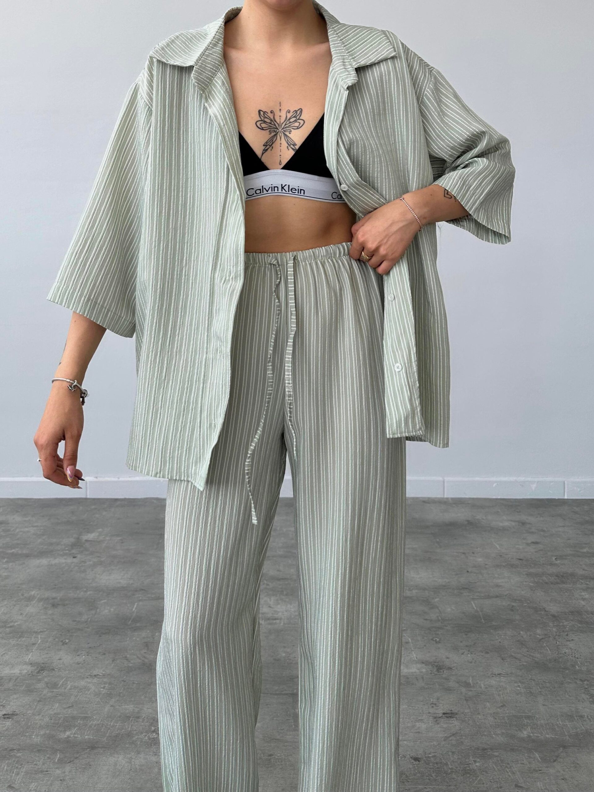 Ana Sayfa ÇOK SATANLAR Score Haki Tensel Çizgili Gömlekli Takım