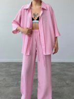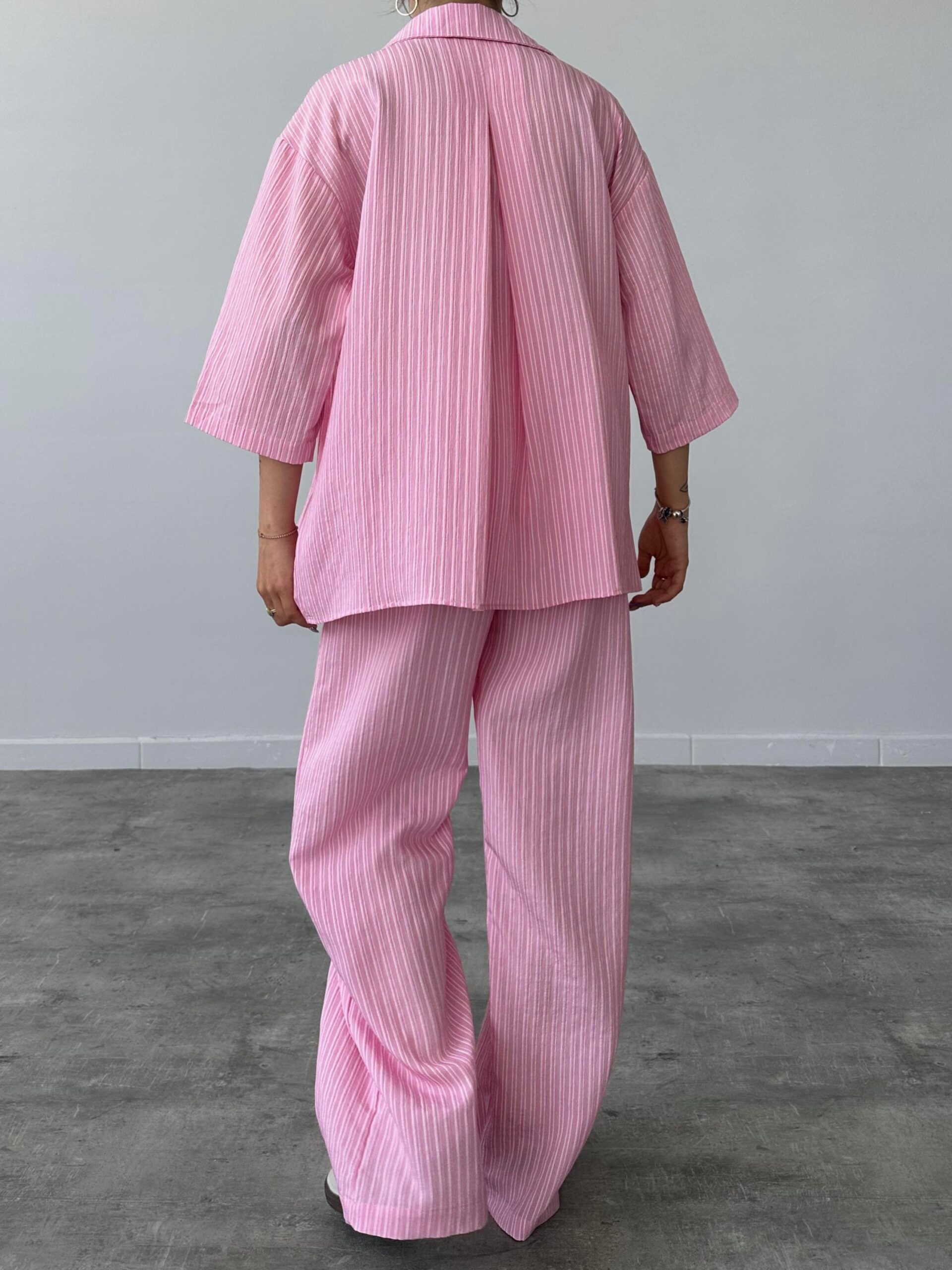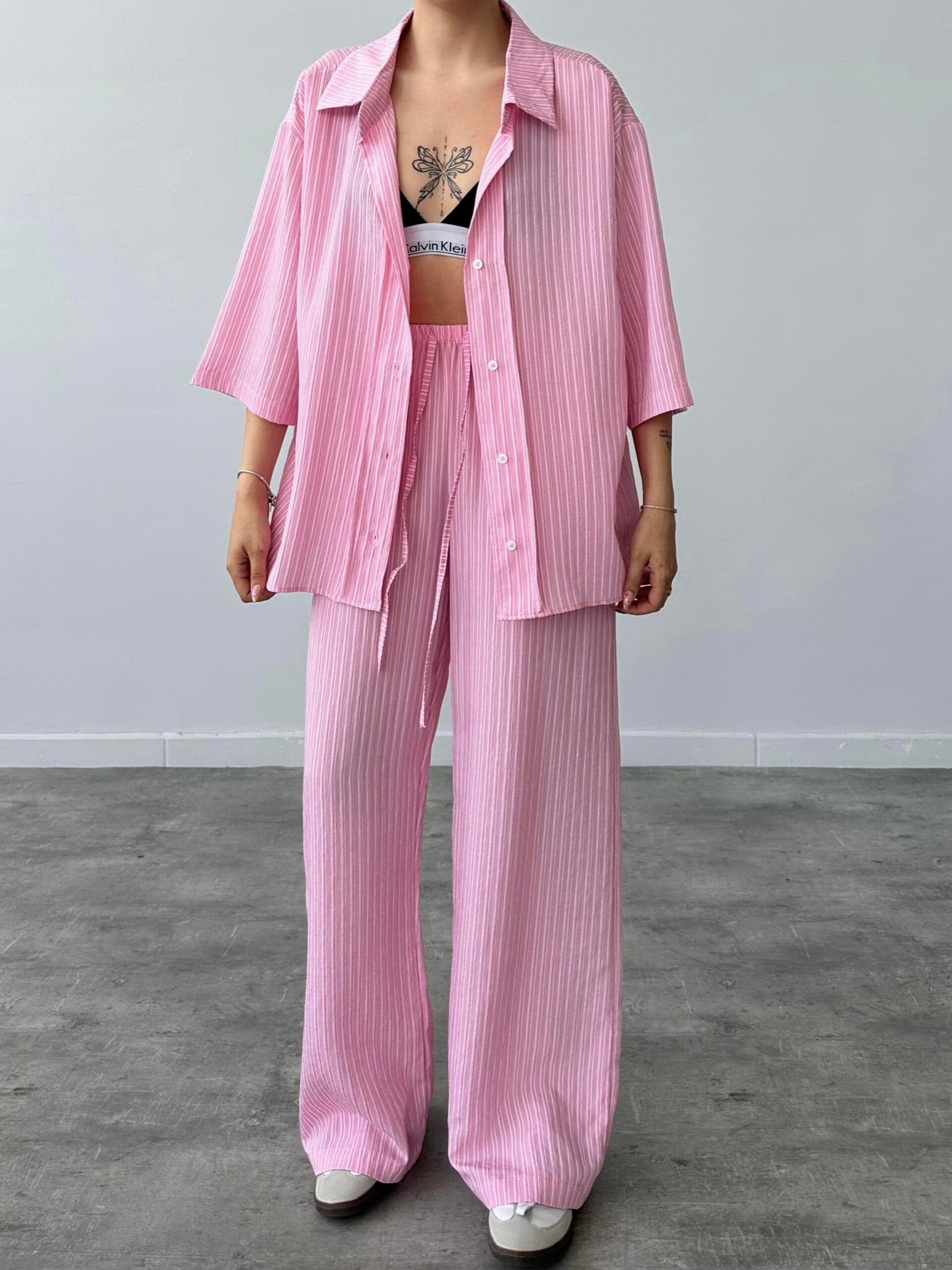 Score Pembe Tensel Çizgili Gömlekli Takım