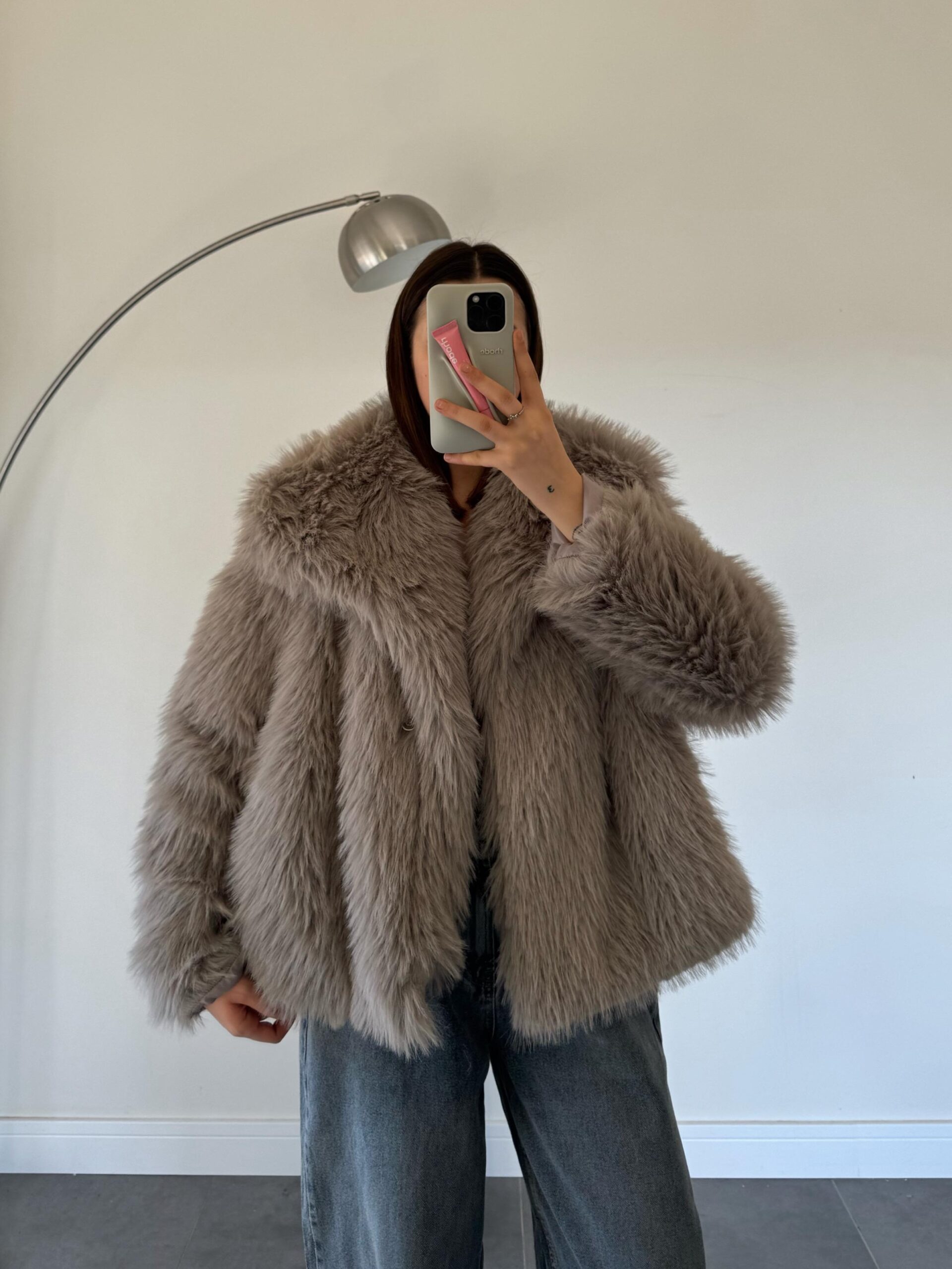 Ana Sayfa ÇOK SATANLAR Seday Çıtçıt Detay Yakalı Gri Kürk Ceket