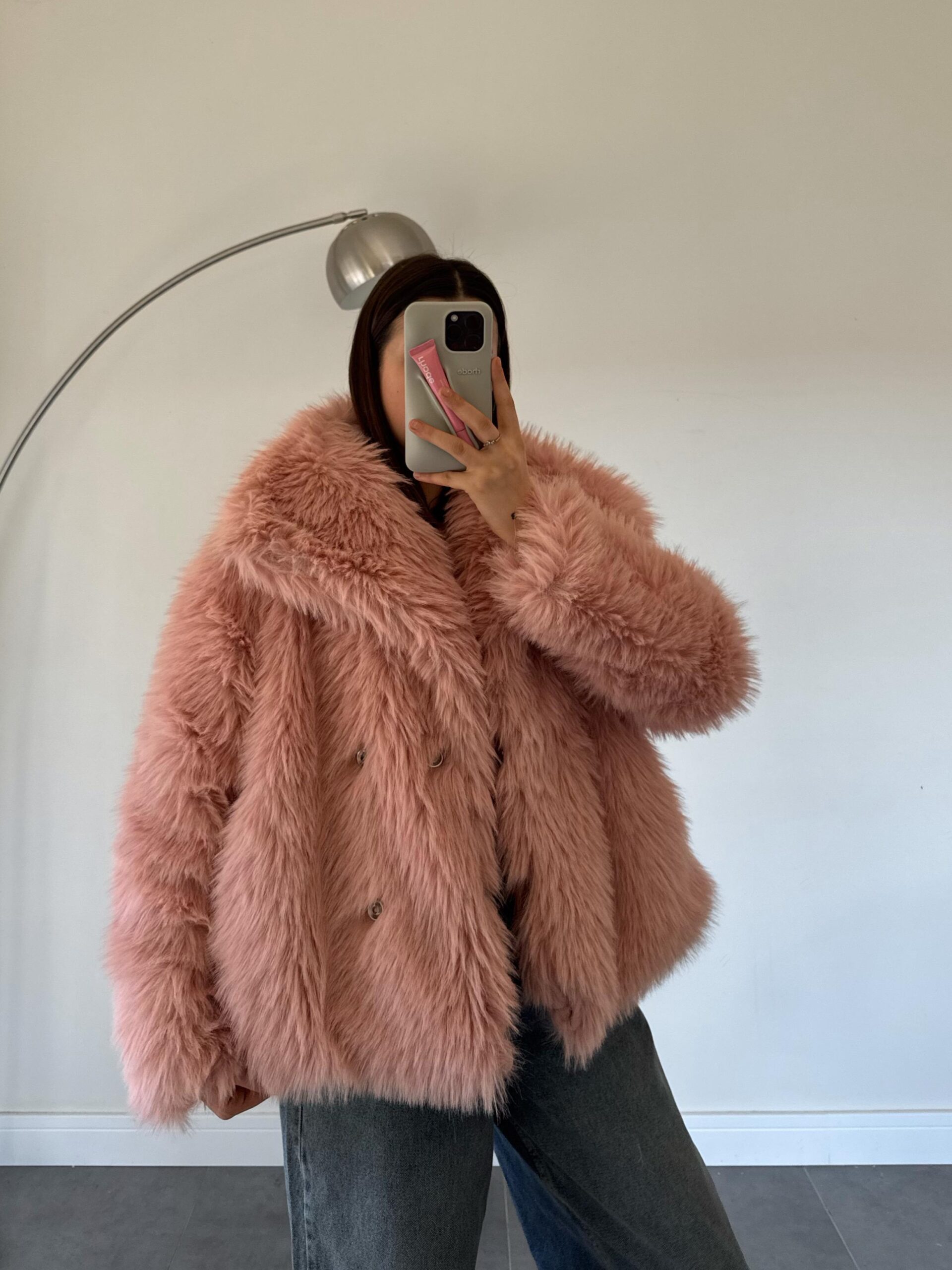 Seday Çıtçıt Detay Yakalı Pembe Kürk Ceket