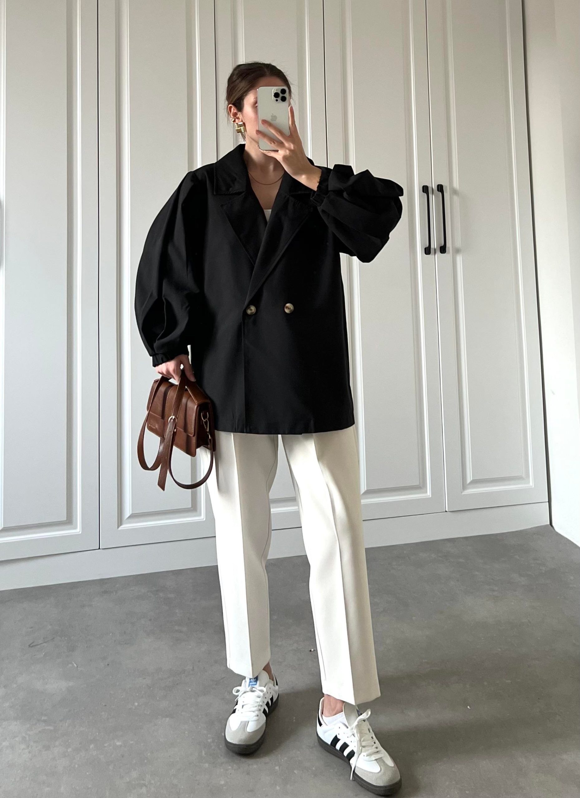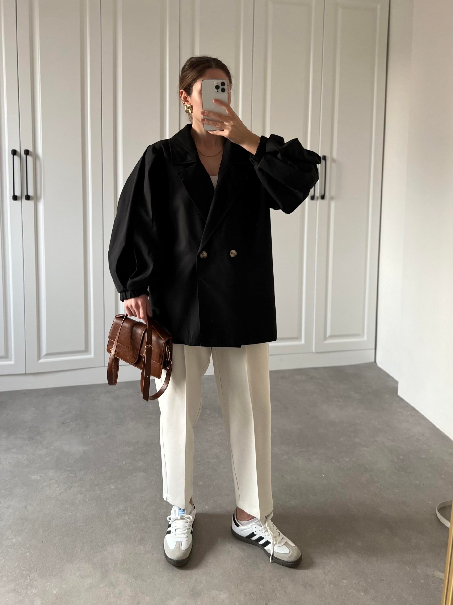 Ana Sayfa Yeni Sezon Siyah Balonkol Kısa Oversize Trençkot