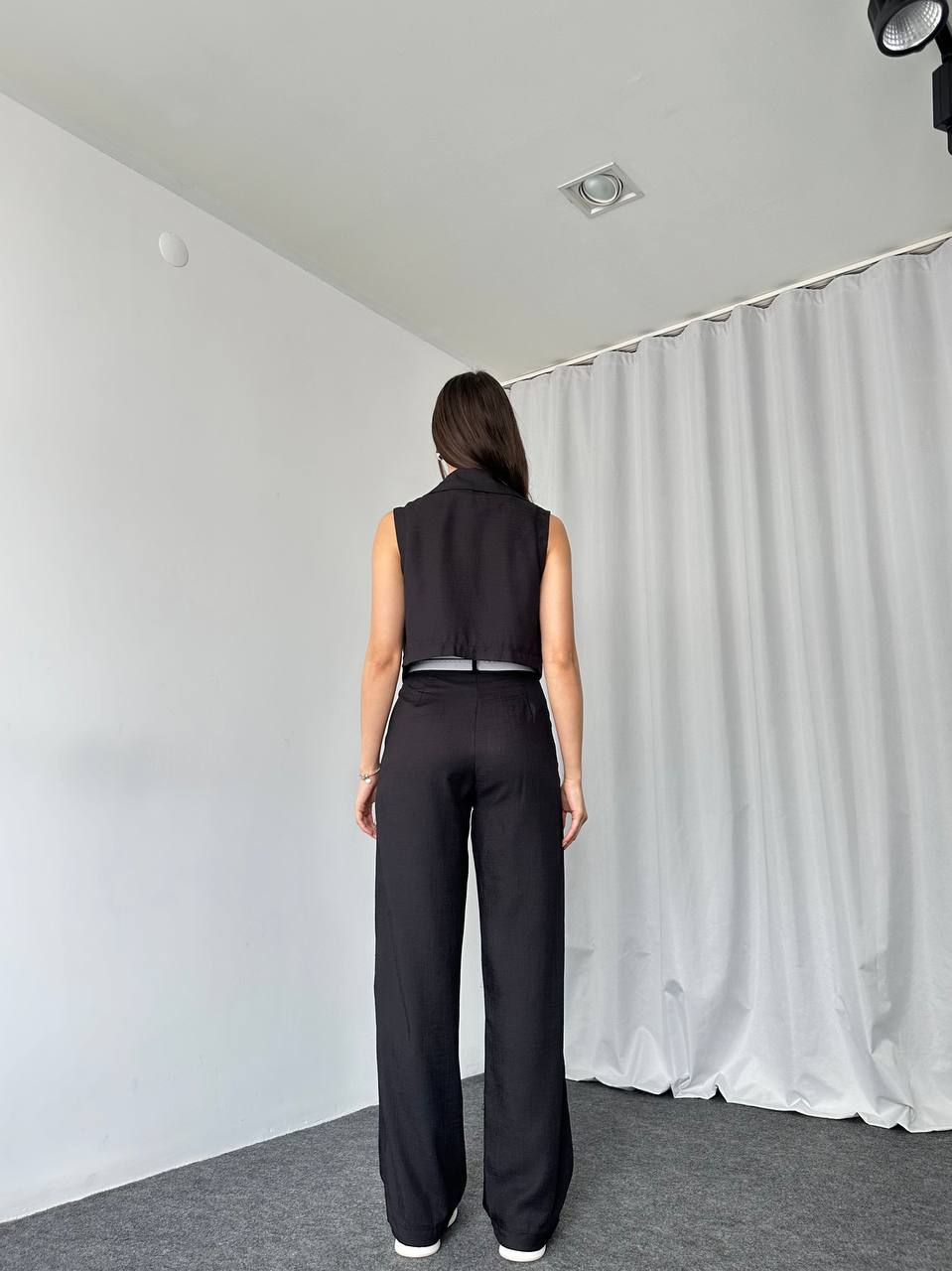Siyah Bel Detaylı Plazzo-Yelek Takım