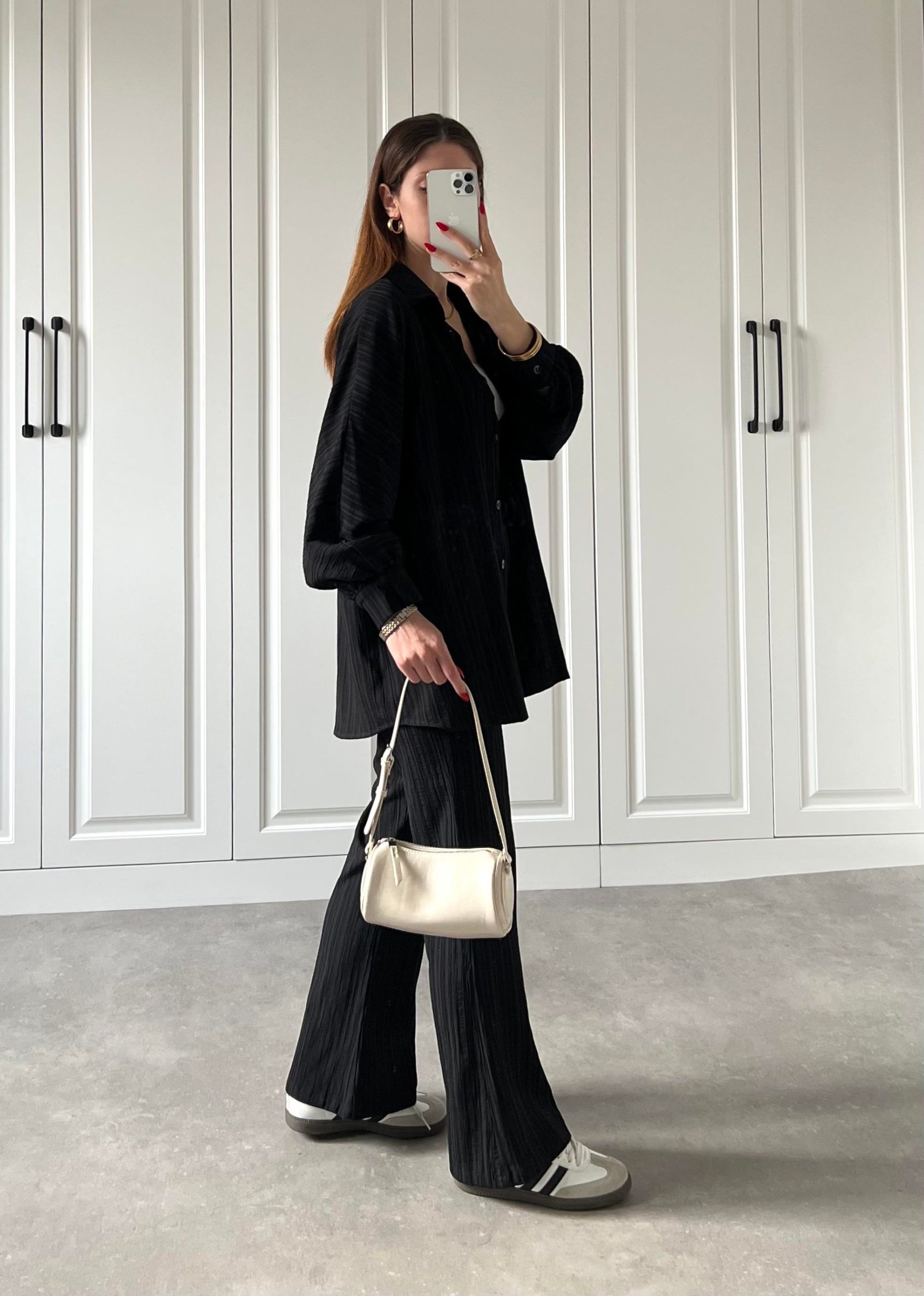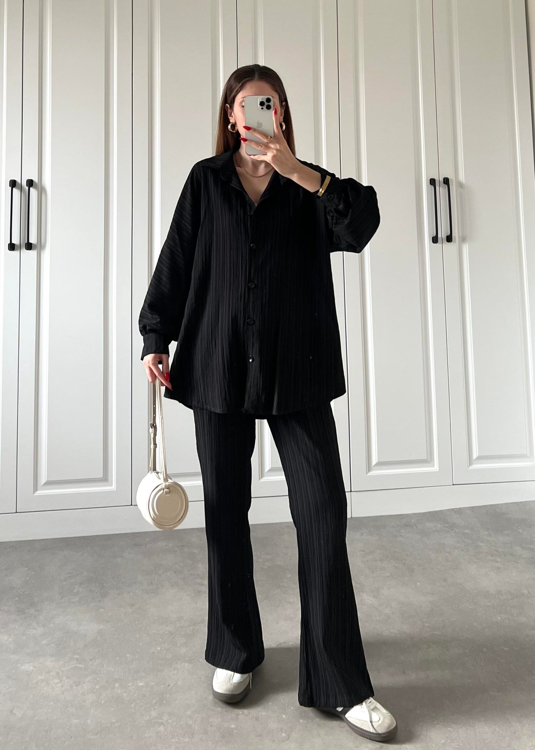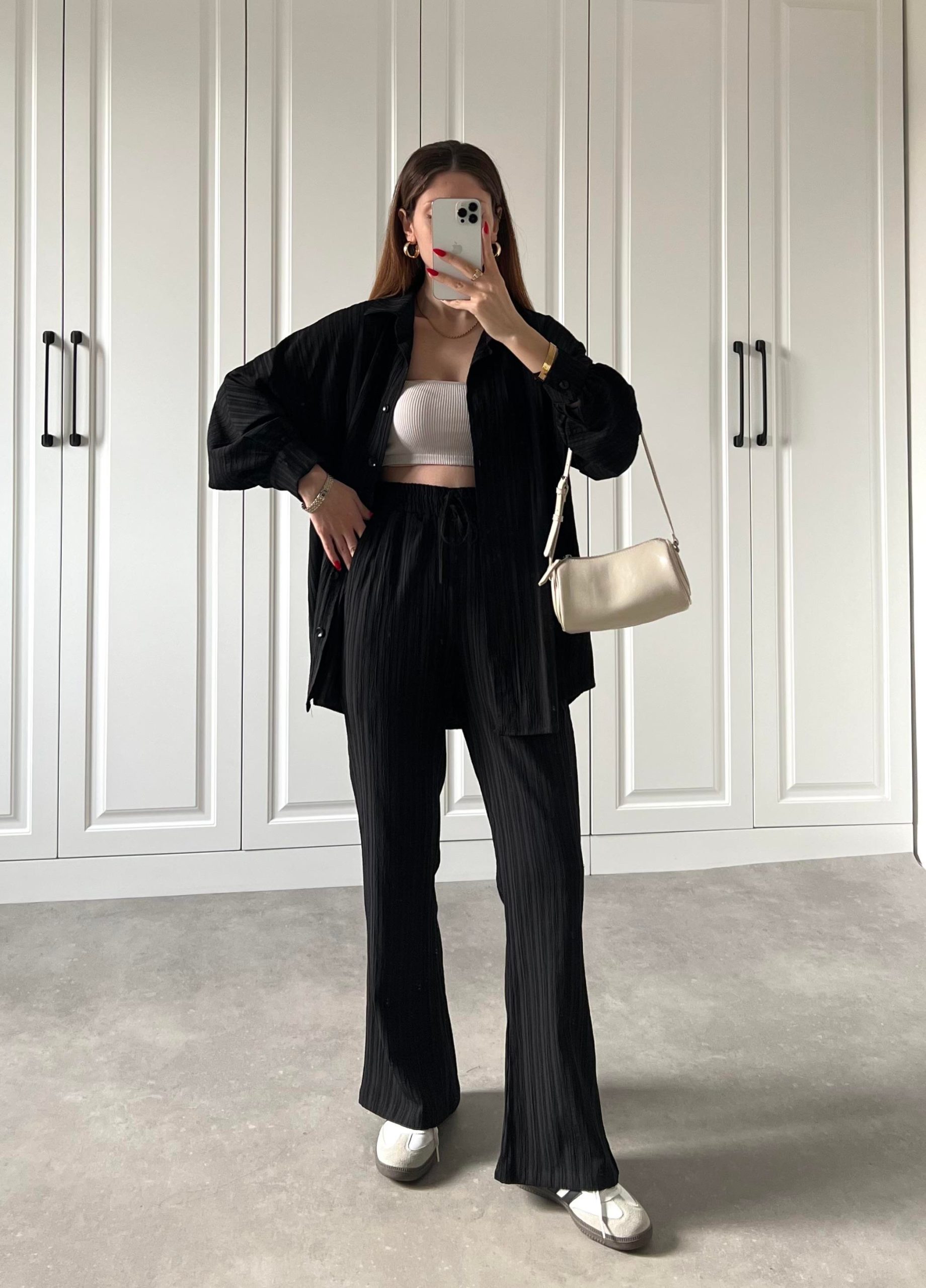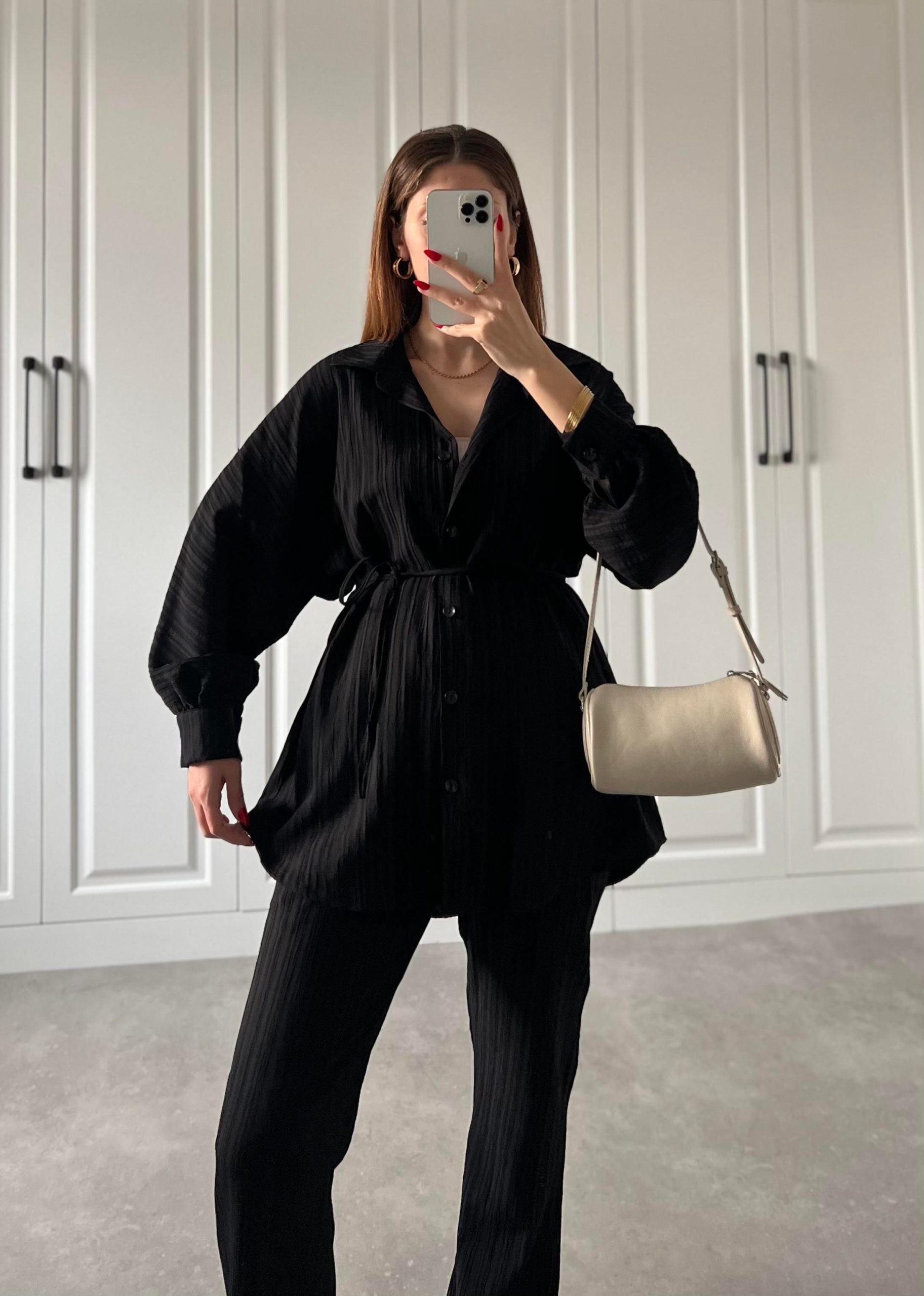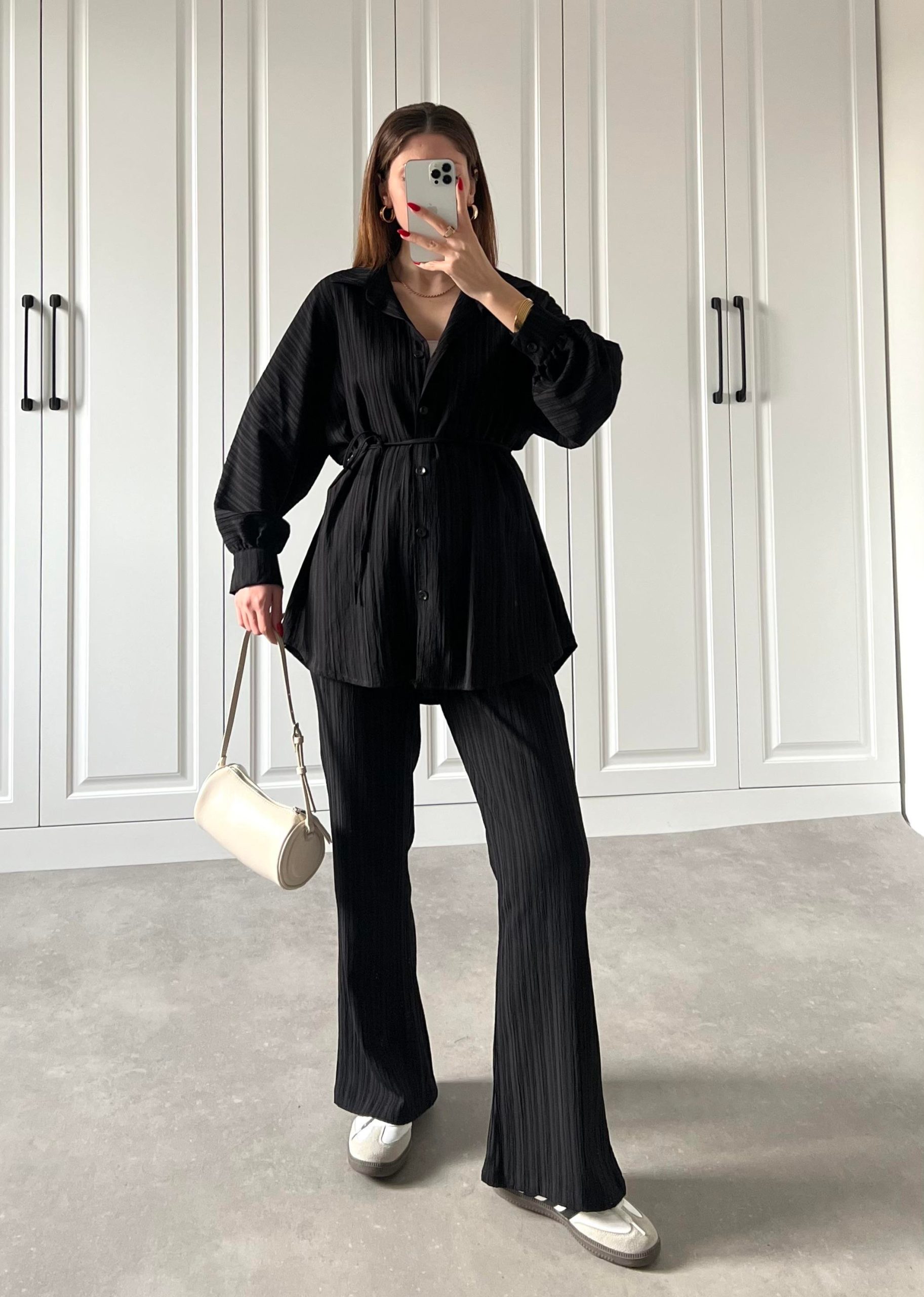 Ana Sayfa Yeni Sezon Siyah Beli Kemerli Gofre İkili Takım