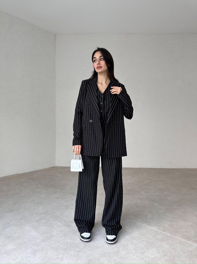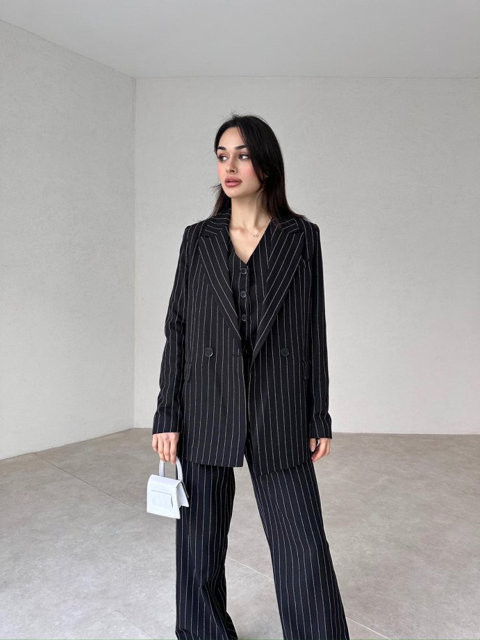 Çizgili Üçlü SALLY Takım tam kalıplıdır.