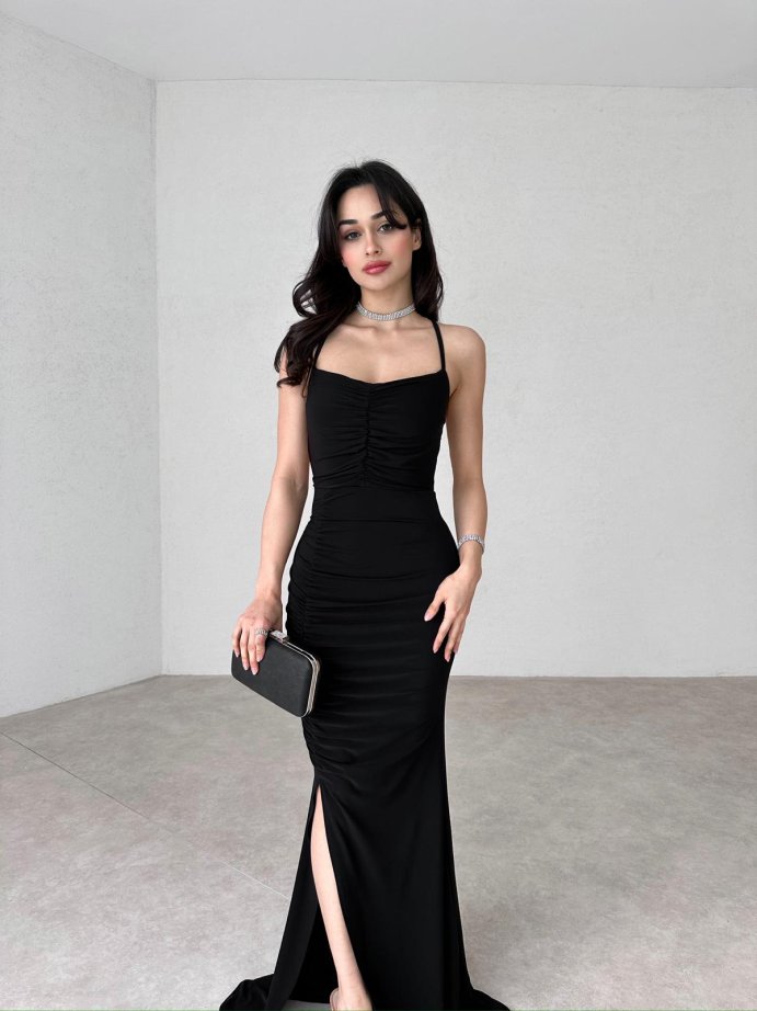 Ana Sayfa YENİ GELENLER Siyah Drapeli Maxi MARİO Elbise