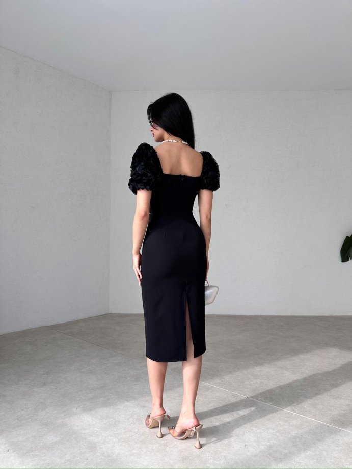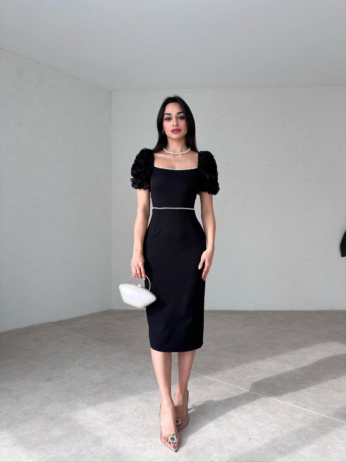 Ana Sayfa YENİ GELENLER Siyah Fırfır Kollu Midi ANJELİKA Elbise