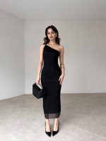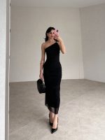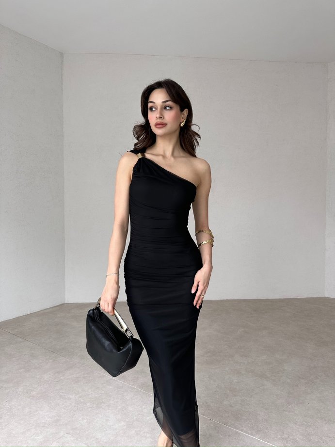 Tek Omuz Tokalı Midi ALVAREZ Elbise tam kalıplıdır.