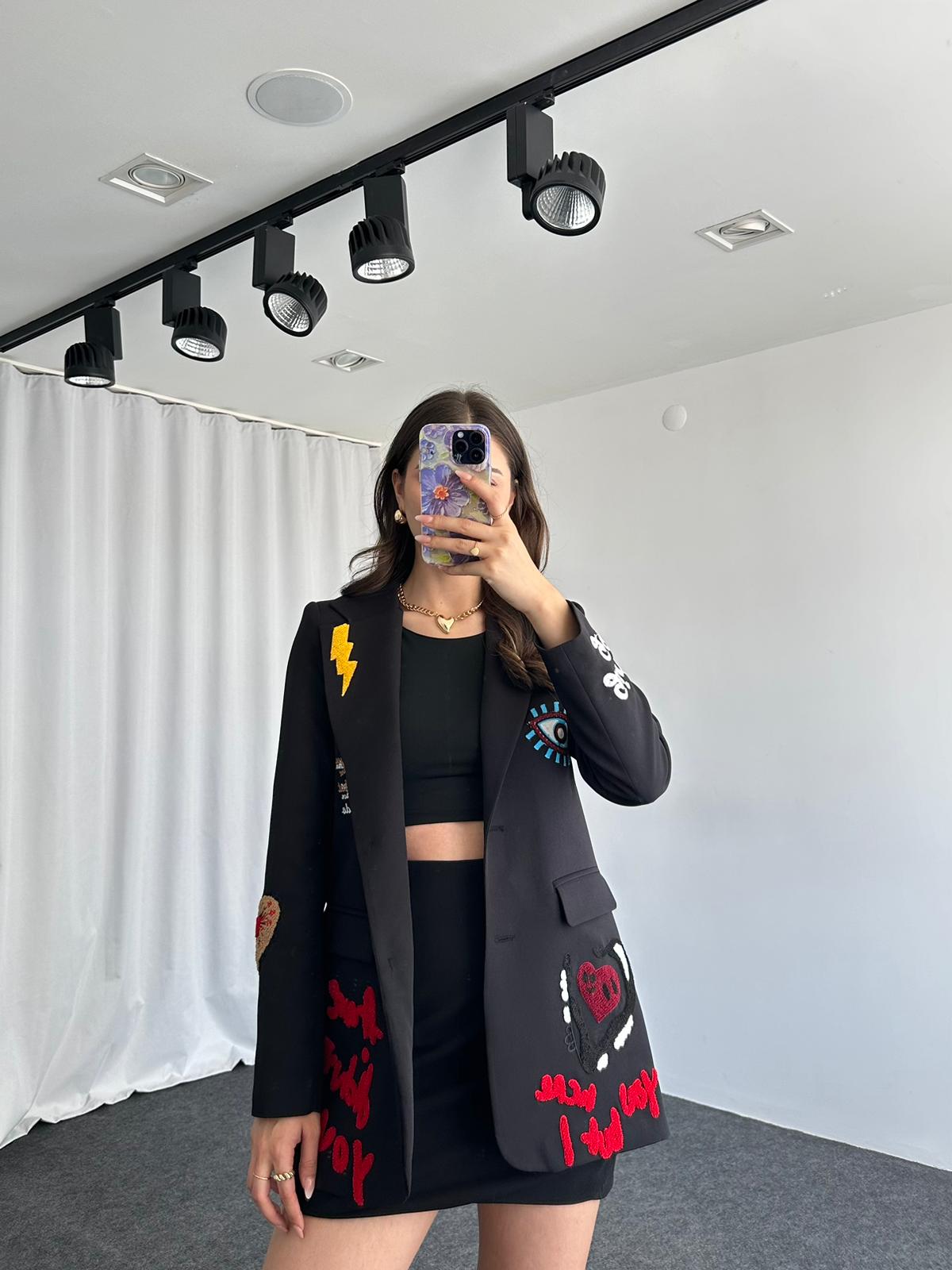 Siyah Nakışlı Tasarım Ceket
