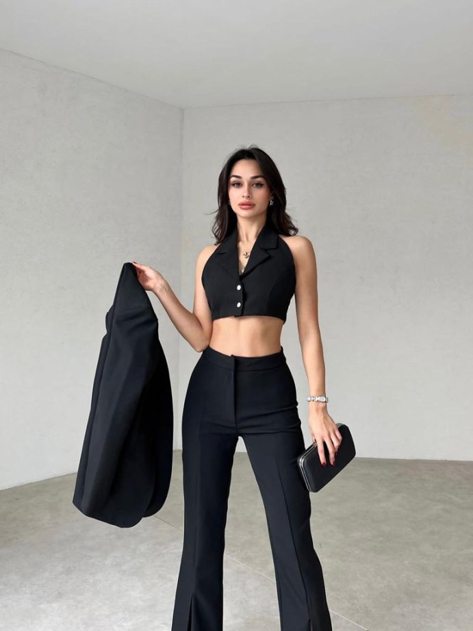 Siyah Sıfır Yaka Ceketli LUDWİG Takım